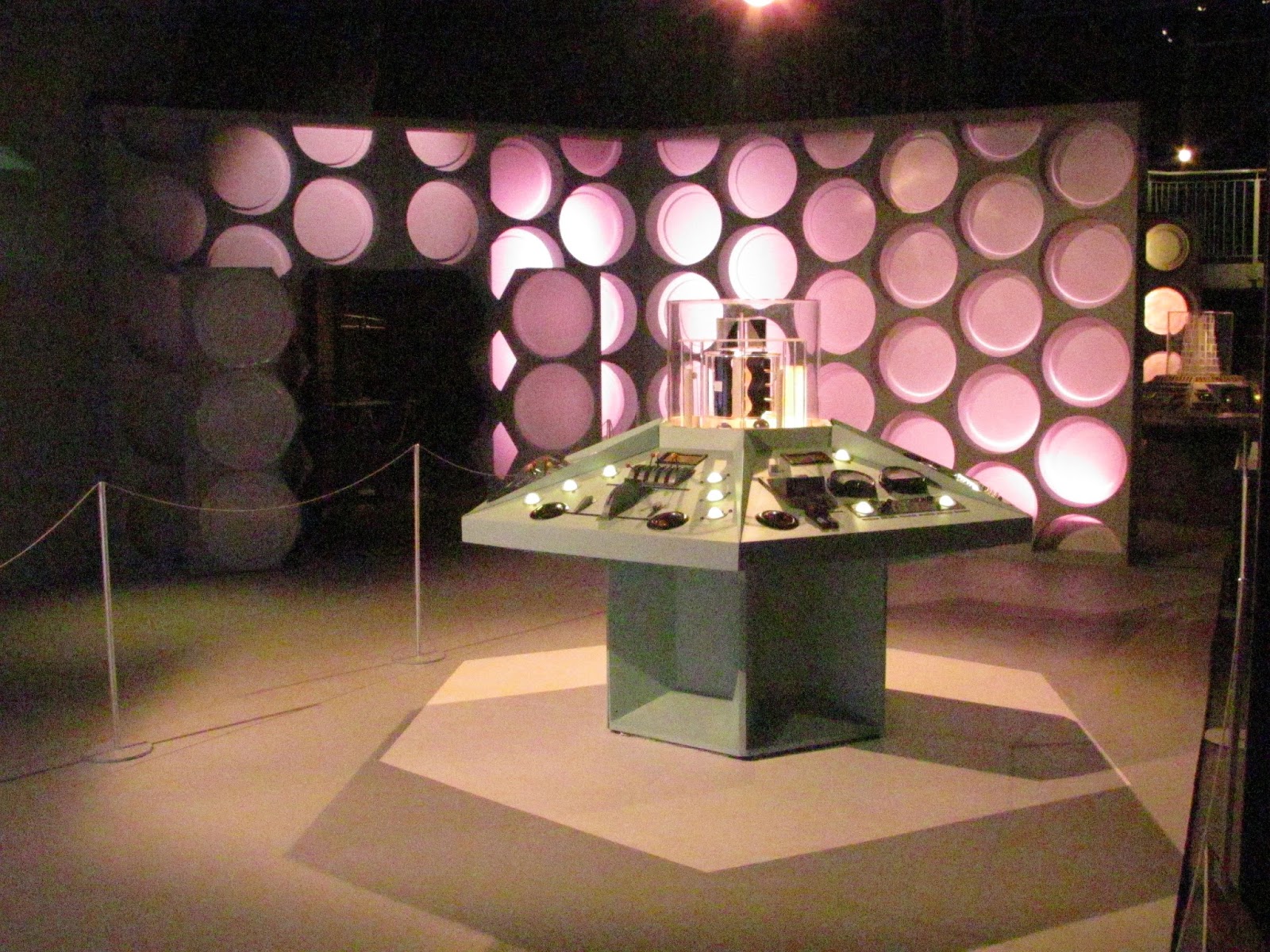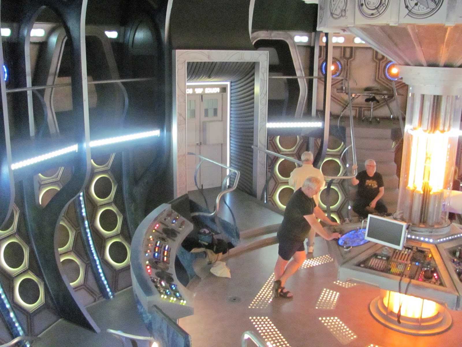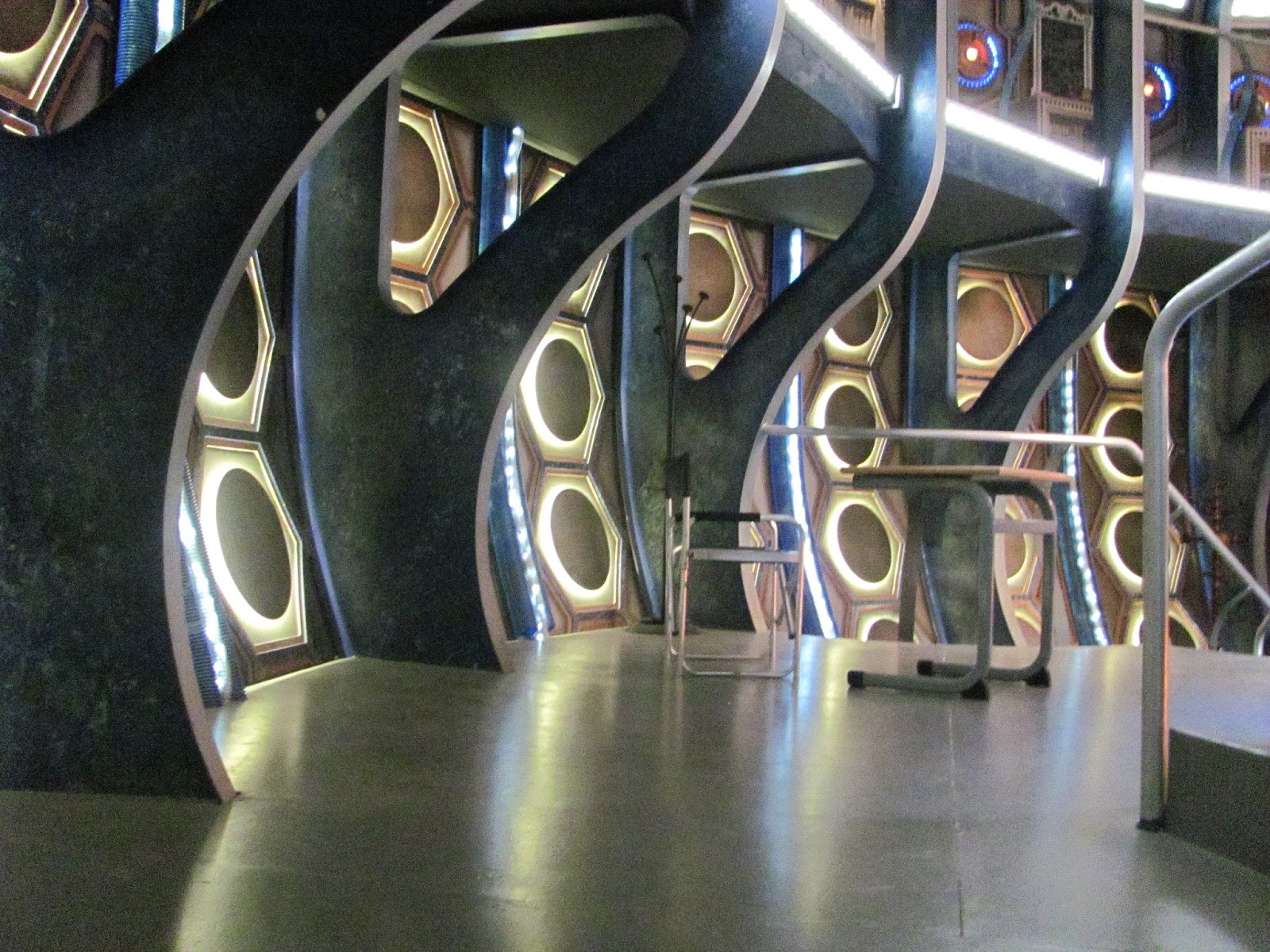 This was due to Ed Russell, Brand Manager for Doctor Who, who generously offered to show us around the set while the main Doctor Who team was off filming in Spain. He arranged for the lights to be put on especially for us, and we had no restrictions or limitations placed on us (except for a 'no video' rule, which of course we complied with). I'm told that there is a TARDIS tour that you can pay for as an 'add on' to a visit to the Doctor Who Experience, but this is only when they are not recording the show, and on these visits, the console and upper level is roped off ...