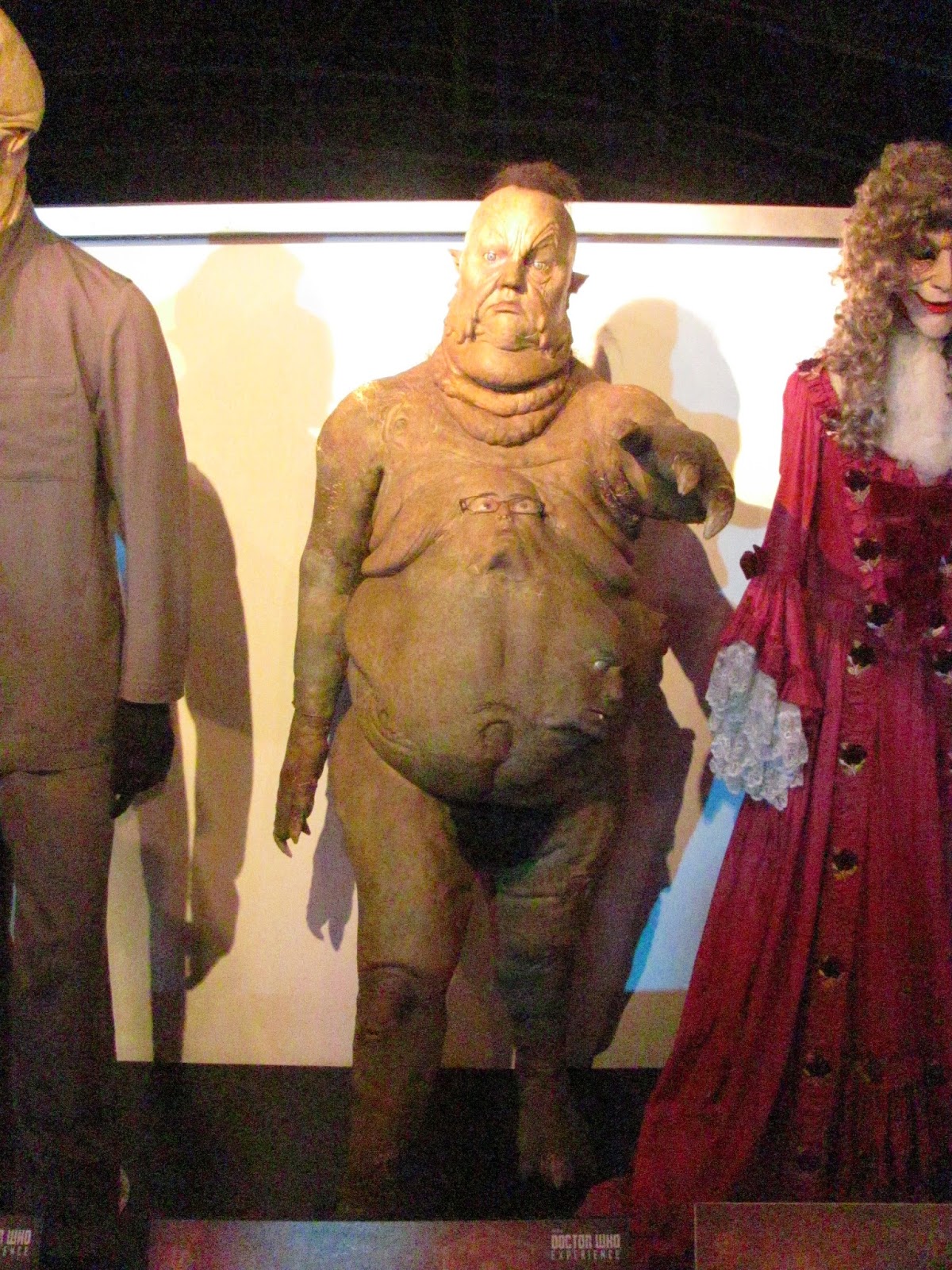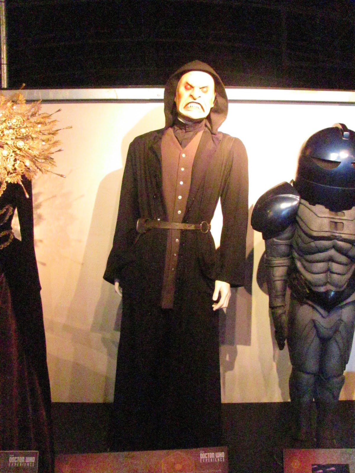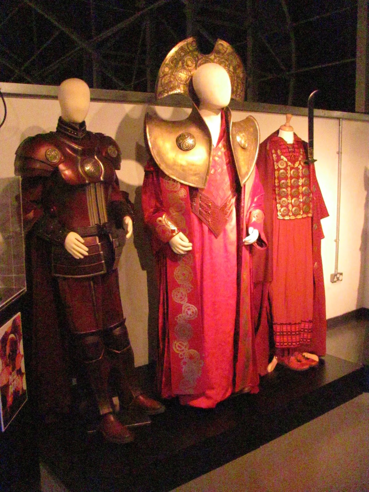 I actually love this control room. It feels functional and right in a way that the Eccleston/Tennant/Smith ones didn't ... and I was very impressed that the console is indeed fully functional, with switches and levers and buttons that mostly make lights light up and things move. There's a gorgeous illuminated cog arrangement on one panel which is a work of art, and another has the interface to the TARDIS' telepathic circuits: a Zygon-like latex/silicon panel of bumps and grooves into which you can plunge your fingers.