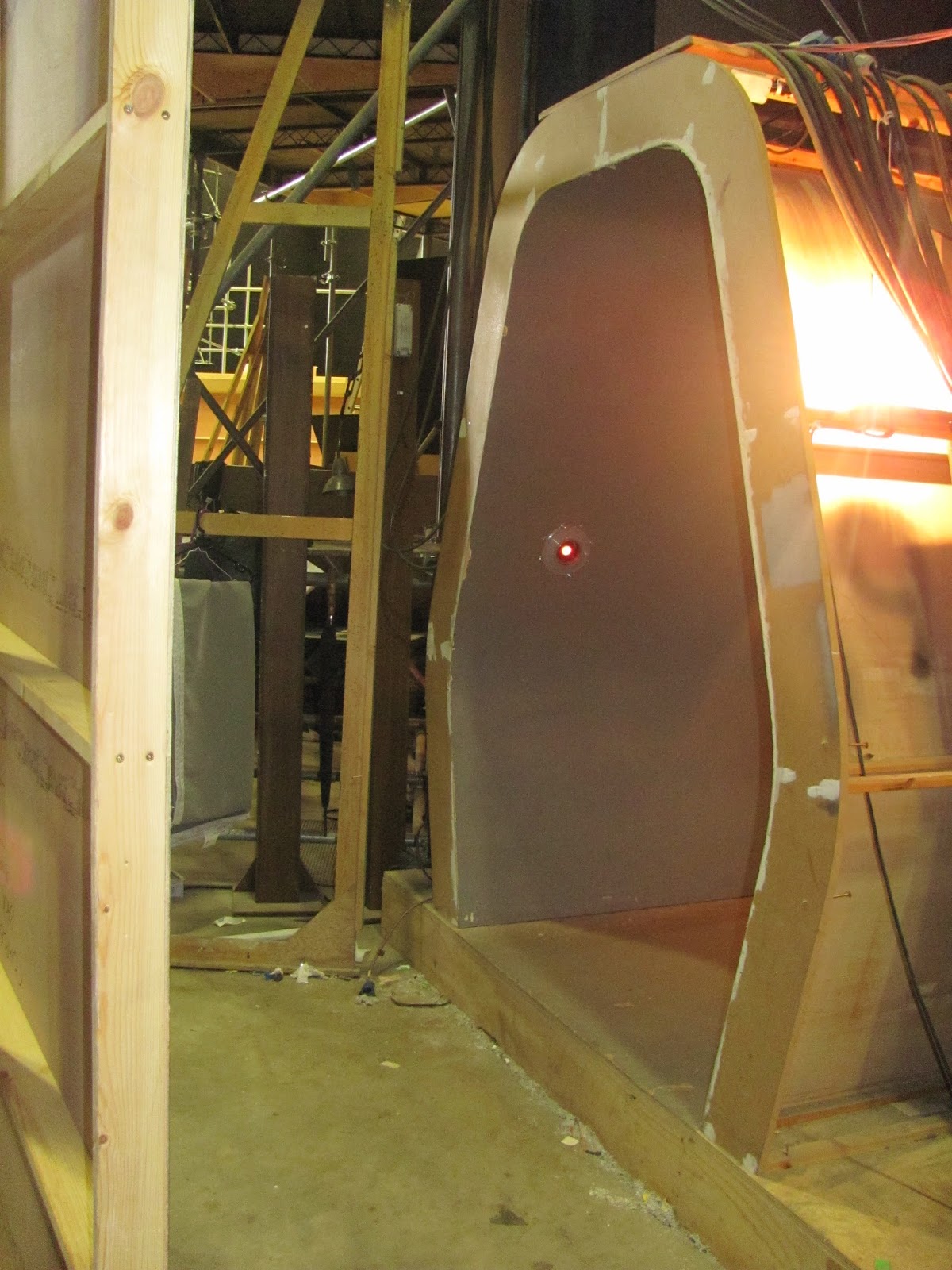 Outside the set, there are the usual boxes of unidentified stuff, and even a Dalek sits forlornly there too ... whether waiting for use in future episodes, or the sole remnant of a Dalek attack on the TARDIS we don't know ... it's cool to see it there though!