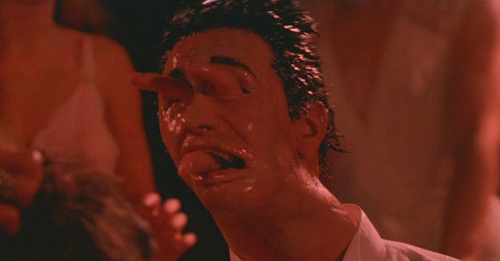 Of course for the horror fan, this is simply awesome, and seeing the name Screaming Mad George on the credits for effects should be enough to let most fans know what sort of thing to expect. George is a master of the twisted body horror, and the film does not disappoint, with visuals ranging from the memorable 'butt face' to a massive hand where a head should be, to bodies being turned completely inside out ... it's an incredible visual array of horror, perhaps only matched by the work of Rob Bottin in John Carpenter's 1982 film The Thing. (It's interesting that George cites both Landis' American Werewolf in London (1981, effects by Rick Baker) and Joe Dante's The Howling (1981, effects by Rob Bottin) as films which influenced him.)