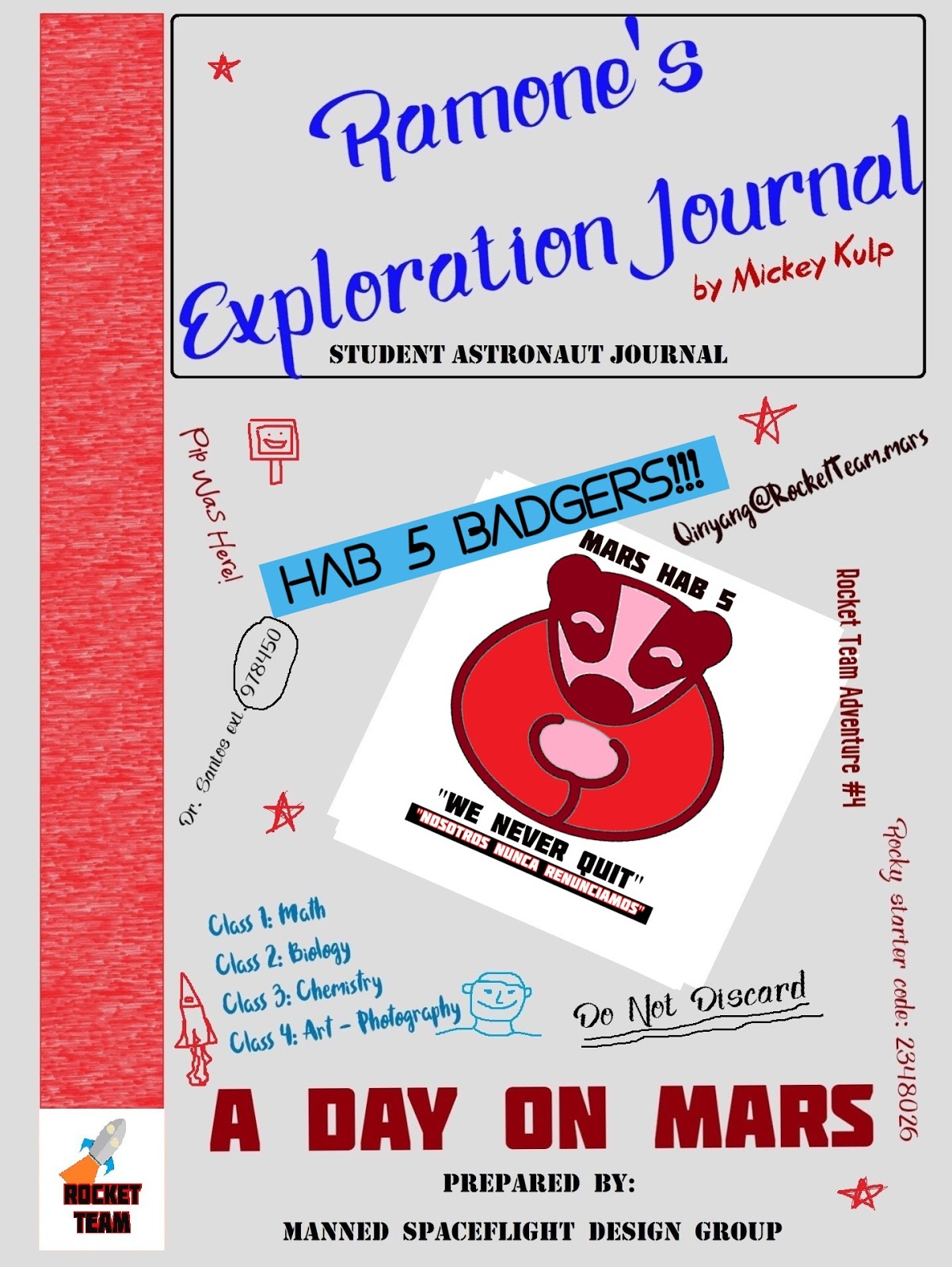 Ramone keeps a daily journal to record his adventures at Gordo Station on Mars. Here, you will find the amazing details of a normal day in the life of a Rocket Team explorer. You’ll see special astronaut activities at the end.