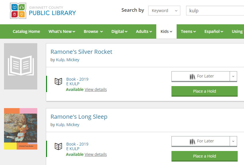 In addition to my poetry books, the Gwinnett County Public Library is now carrying my Rocket Team series of children's picture books in their circulation.