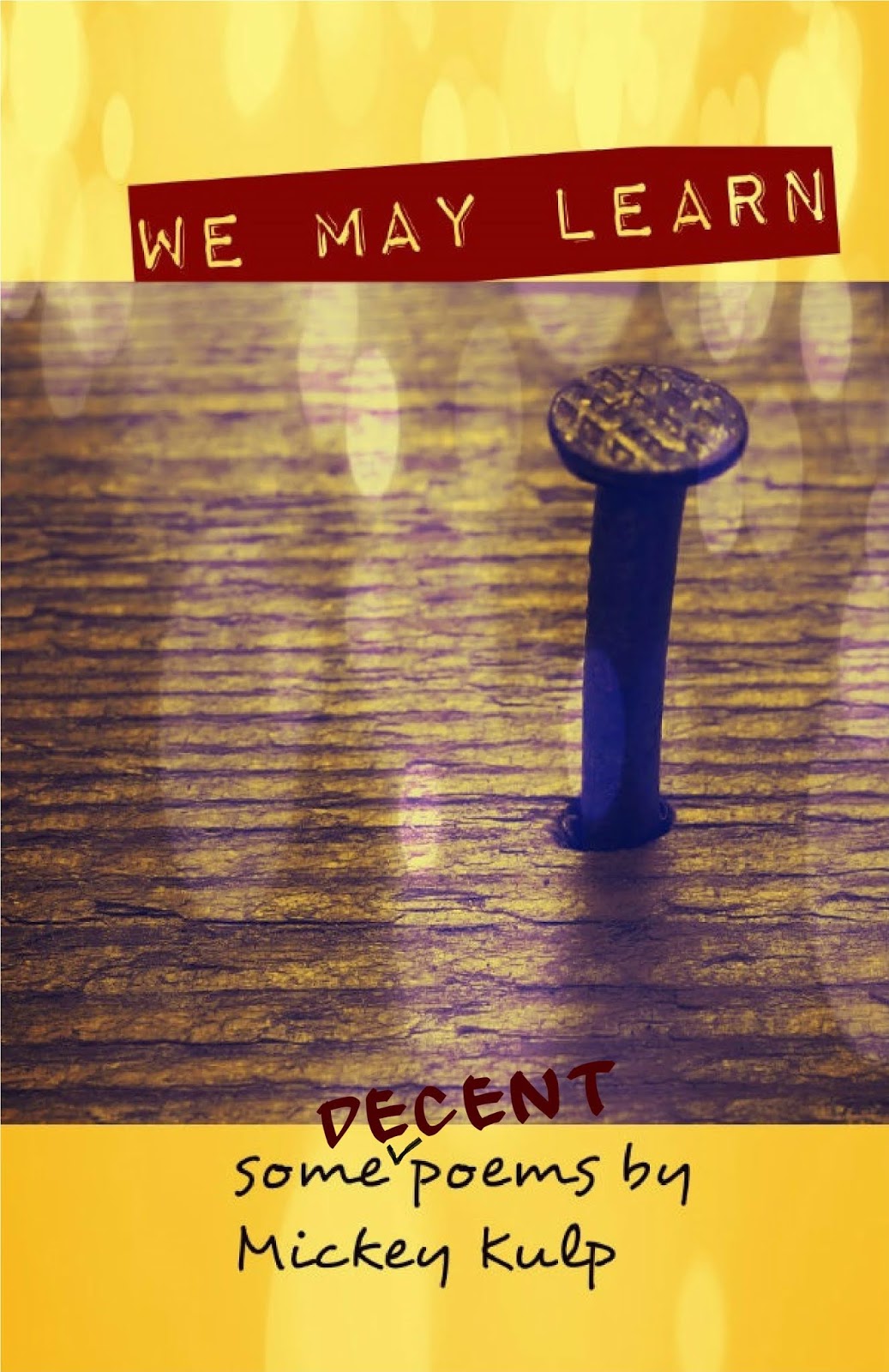 Entering his 17th year as a published writer, Mickey Kulp is pleased to announce that his next collection of short poems, ‘We May Learn: some decent poems’, is available for your reading pleasure and personal rescue. This is a book about second chances blossoming into something unexpected. It is unafraid to go down dark alleys, but it is also ready to embrace the unalloyed contentment of dancing in the sunshine.