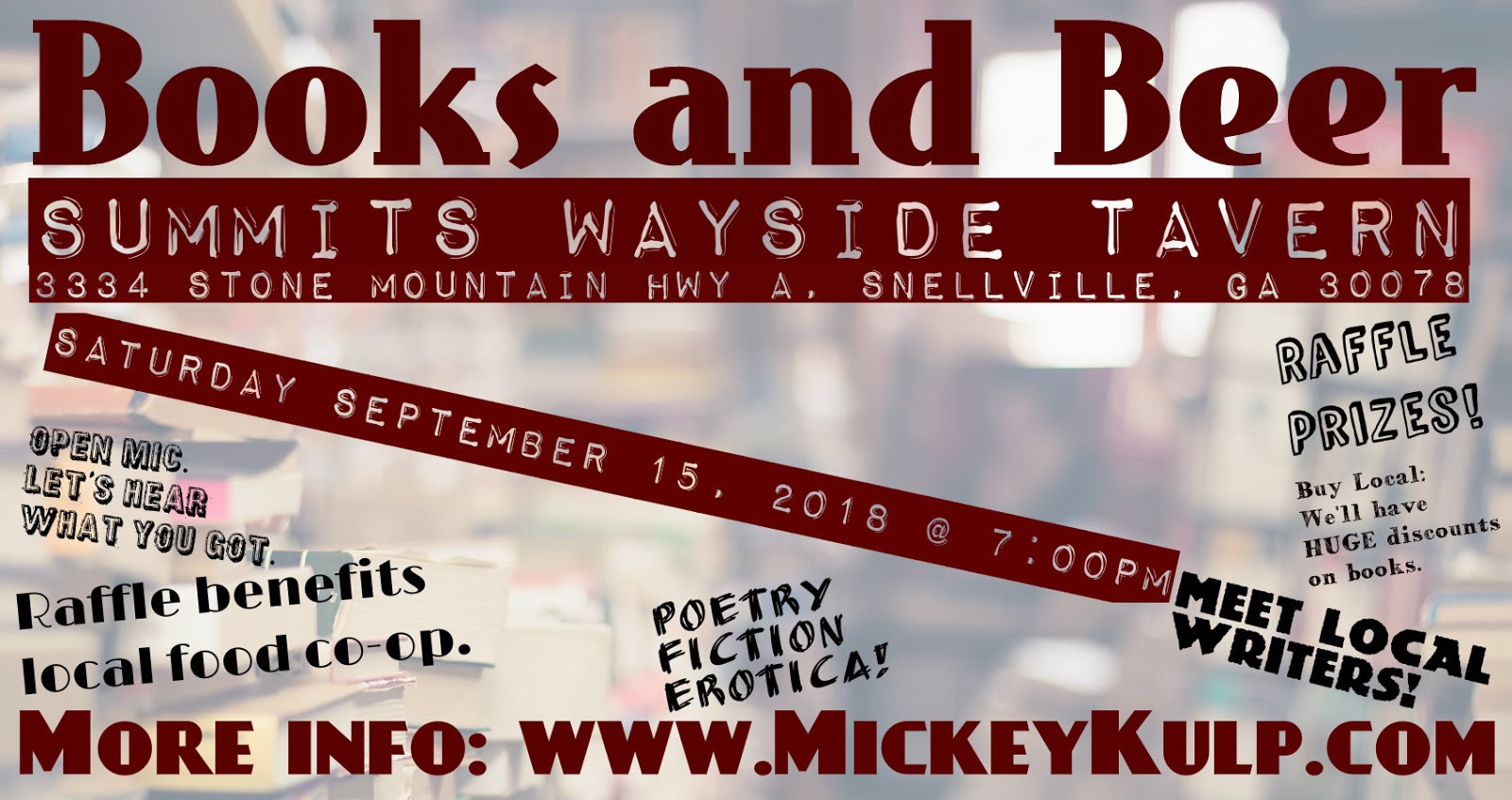 MichaelKulpWriter@gmail.comwww.MickeyKulp.comHere are some frequently asked questions about the June 9 2018 reading event.