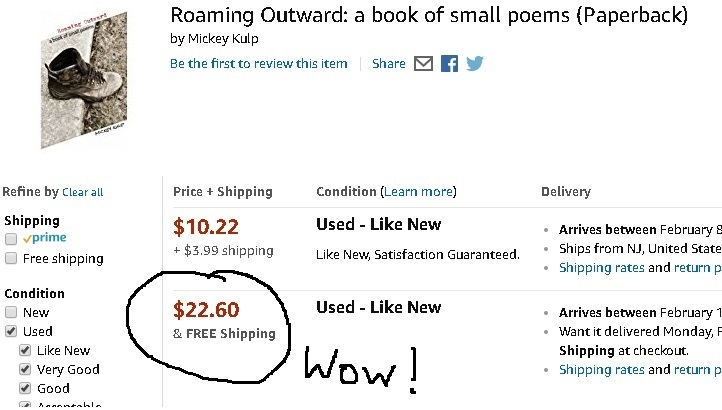 Amazingly, some ambitious online book sellers (see image below) are charging over $20 for my sacred tome. But you deserve better. The first ten people responding with United States mailing addresses can get a signed copy of my book with free shipping for the paltry sum of $7.99.