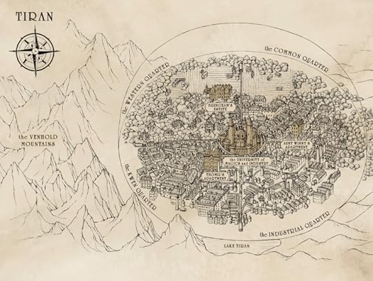 Just posting to share the following map of Tiran and spellograph artwork (both by the amazing Elwira Pawlikowska) that will feature in the Del Rey release of my dark academia, Blood Over Bright Haven.