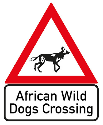 It was really exciting to be asked by the Waterberg Wild Dog Initiative (WWDI) to design two road signs – to be approved by SANRAL (The South African National Roads Agency). One was a Warning sign (a "yield" animal crossing), and the second being an Information sign (wild dogs in the area, and WWDI logo/details).