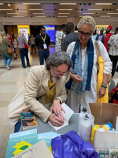Fellow South African author, Masande NtshangaDr Onyeka Nwelue pulled together a wide variety of experts in their fields, creating a programme any festival would be envious of, and pulling it together in a record amount of time – along with logistical issues faced by many guests coming from the Continent! I was happy to have been involved in the design and marketing of the festival, along with input on the programme and panels.