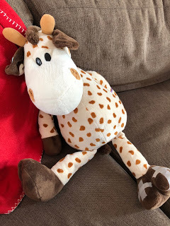 Dagarna har ägnats åt i stort sett en enda lek: Giraffs kalas. Giraff fyller år (varje dag) och ska ha kalas. Gästerna (alla andra gosedjur och dockor som hemmet kan uppbringa) kommer en efter en och har med sig varsin present. Alla roller spelas av mig.