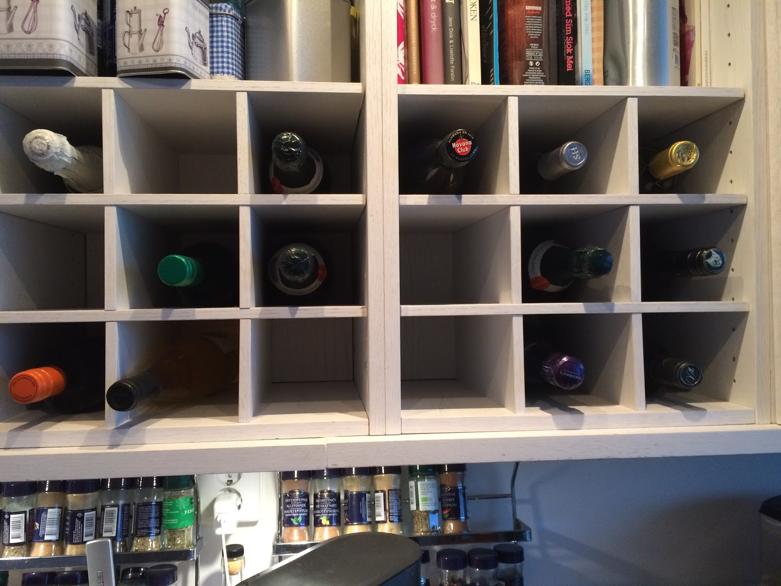 Dessutom har en flaska Havana Club (d.v.s. rom) letat sig in i stället vid något tillfälle, helt enkelt eftersom vi inte har något bra förvaringsutrymme för höga spritflaskor.