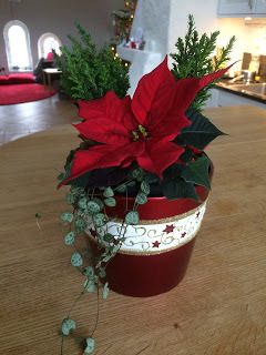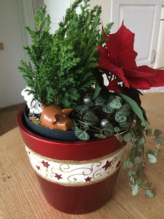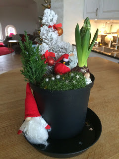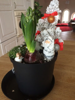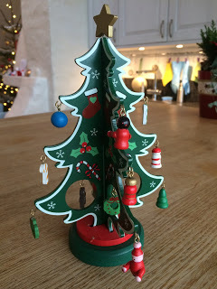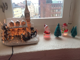 Tips till föräldrar med någorlunda små barn: Denna lilla gran med tillhörande pynt går att dekorera om och om och om och om igen, medan man själv dricker kaffe eller bara pustar ut i största allmänhet. Hittade den på typ Guldfynd eller något liknande. Den var billig också! 50 spänn. (Det kan tilläggas här att julgrupperna inte var ett ekonomiskt gynnsamt alternativ till de köpbara - de kostade tillsammans med pynt och allt typ 600 kronor, tror jag.)