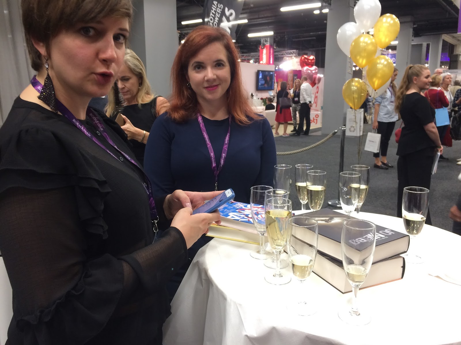 Jag och BYKW-tjejerna minglar inför tillkännagivandet av Årets Bok 2017