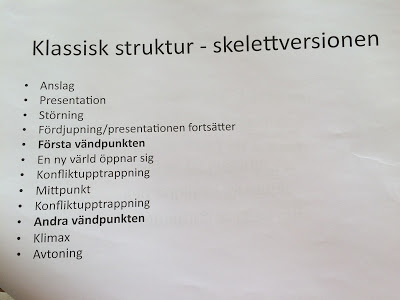 I går var jag på en kurs i dramaturgi i Sveriges författarbunds underdivision BULTs regi. Jorå, fint skareva! Och fint VAR det! Jag var SÅ starstruck av att sitta där tillsammans med ett axplock av Sveriges mest framstående barn- och ungdomsförfattare. Eller vad sägs om Lisa Bjärbo, Ingrid Olsson, Elisabeth Östnäs och Eva Susso, för att bara nämna några? Och vem ledde kursen då? Ingen mindre än Alex Haridi.