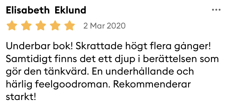 Antalet lyssningar på Storytel är i skrivande stund 81 och snittet där är 3,28 - vilket faktiskt inte är något alarmerande uselt betyg på just feelgood, har jag upptäckt. Folk verkar älska att såga den typen av böcker.