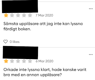 De recensioner/omdömen jag har fått är dock jättefina allihop. Exempel från Storytel: