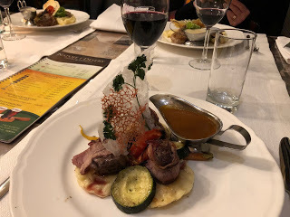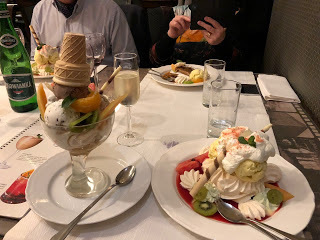 ... samt mina två efterrätterOj, vad servitören tyckte att jag var konstig när jag ville ha två efterrätter, men jag stod envist på mig. När de väl kom in förstod jag vad han menade - de var enorma båda två - men på rent pannben satte jag i mig rubbet. Jag gillar efterrätter och hatar känslan av att behöva missa någonting - jag lär väl aldrig besöka just denna restaurang igen, liksom!