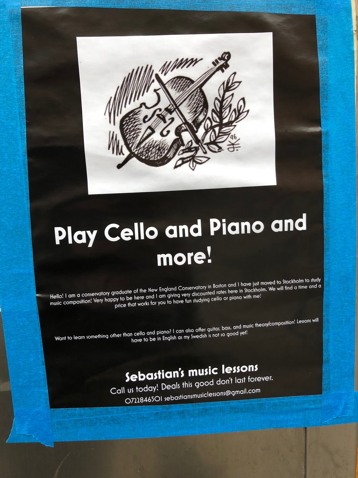 Det kändes som om det var lite av ödet, eftersom jag precis just givit mig i kast med cellon. Så jag hörde av mig och fick så småningom även svar. Vi ska förmodligen ha en första lektion på onsdag nästa vecka.