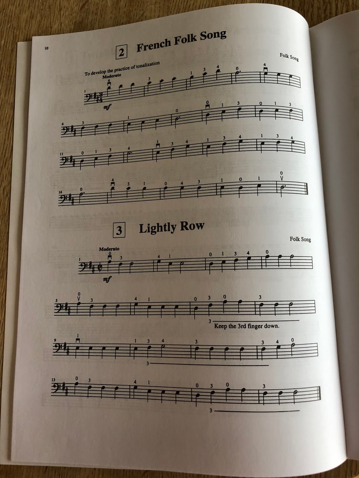 Eller, ok, jag fick dra stråken fram och tillbaka över alla strängar. Och jag fick spela pizzicato medan jag flyttade pekfingret längs greppbrädan.