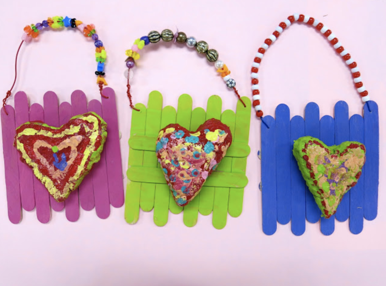 Then we created our clay plaques! This year, we made ours using heart-shaped cookie cutters but really any could be used. In the past, we have glazed these or painted them with acrylics. Not sure how we will finish them off but we will definitely be using wire and beads to create a fun hanger!