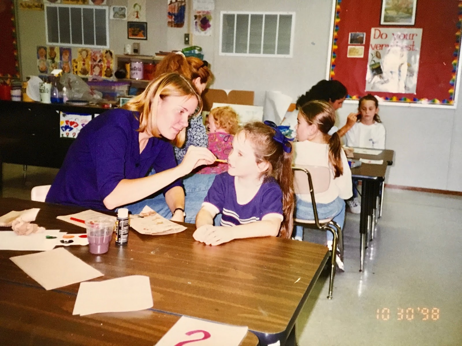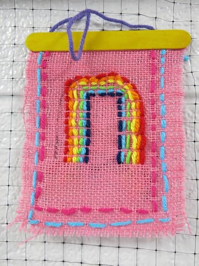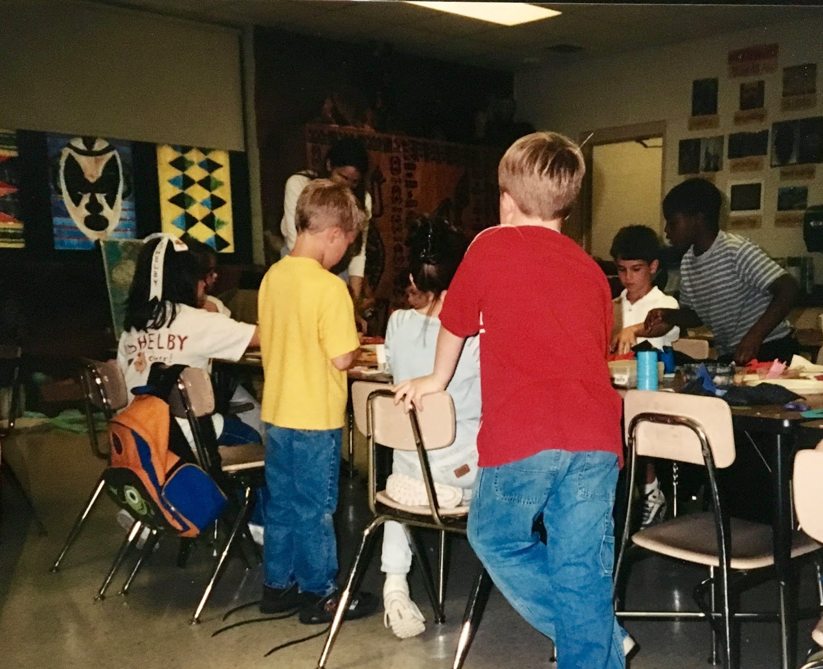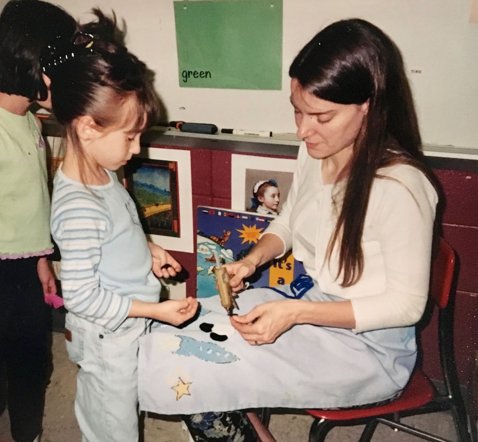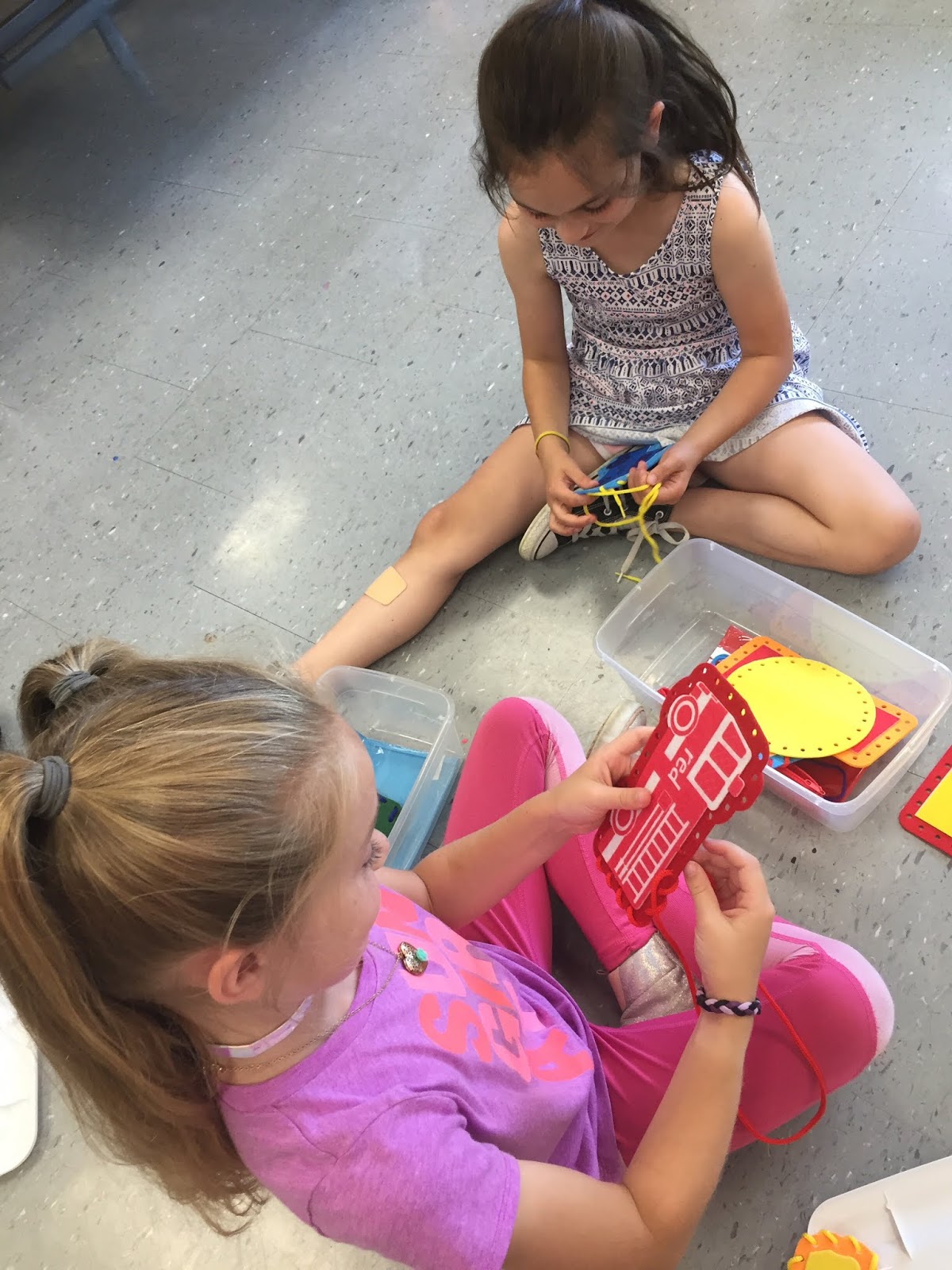 In a pinch, when time was running short, we did use fluorescent poster board and bingo daubers for some of the drawings. We did this because I only had one 30 minute art class with the kids before the big day...so we worked with the time we had. I wanted to insure that every kiddo had a work of art in this special room.