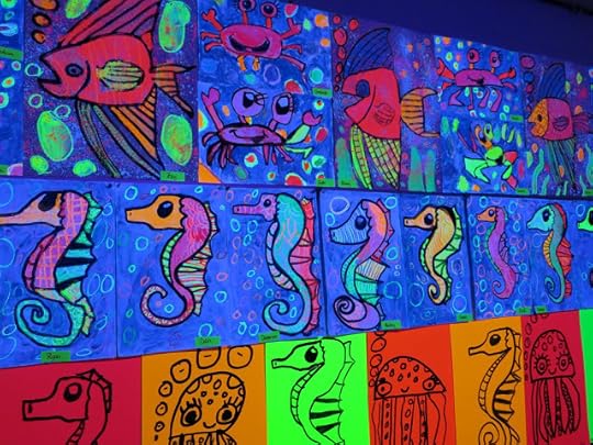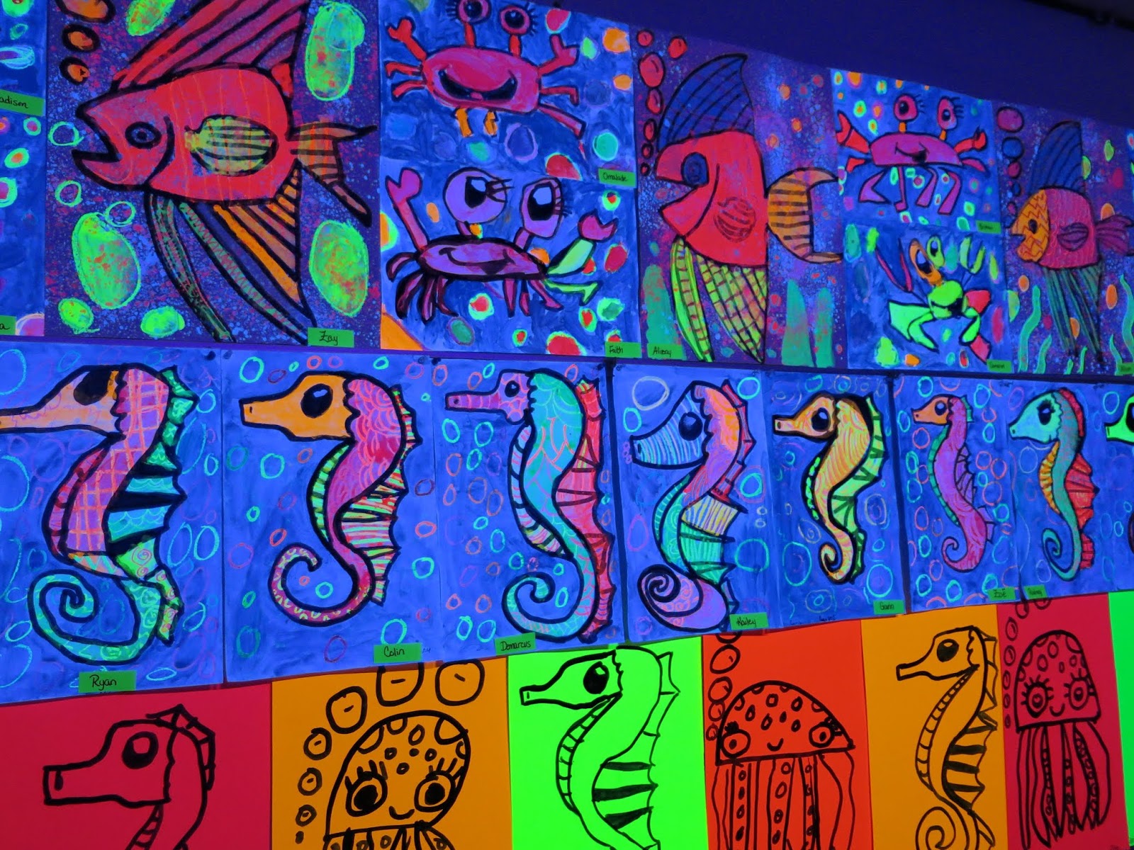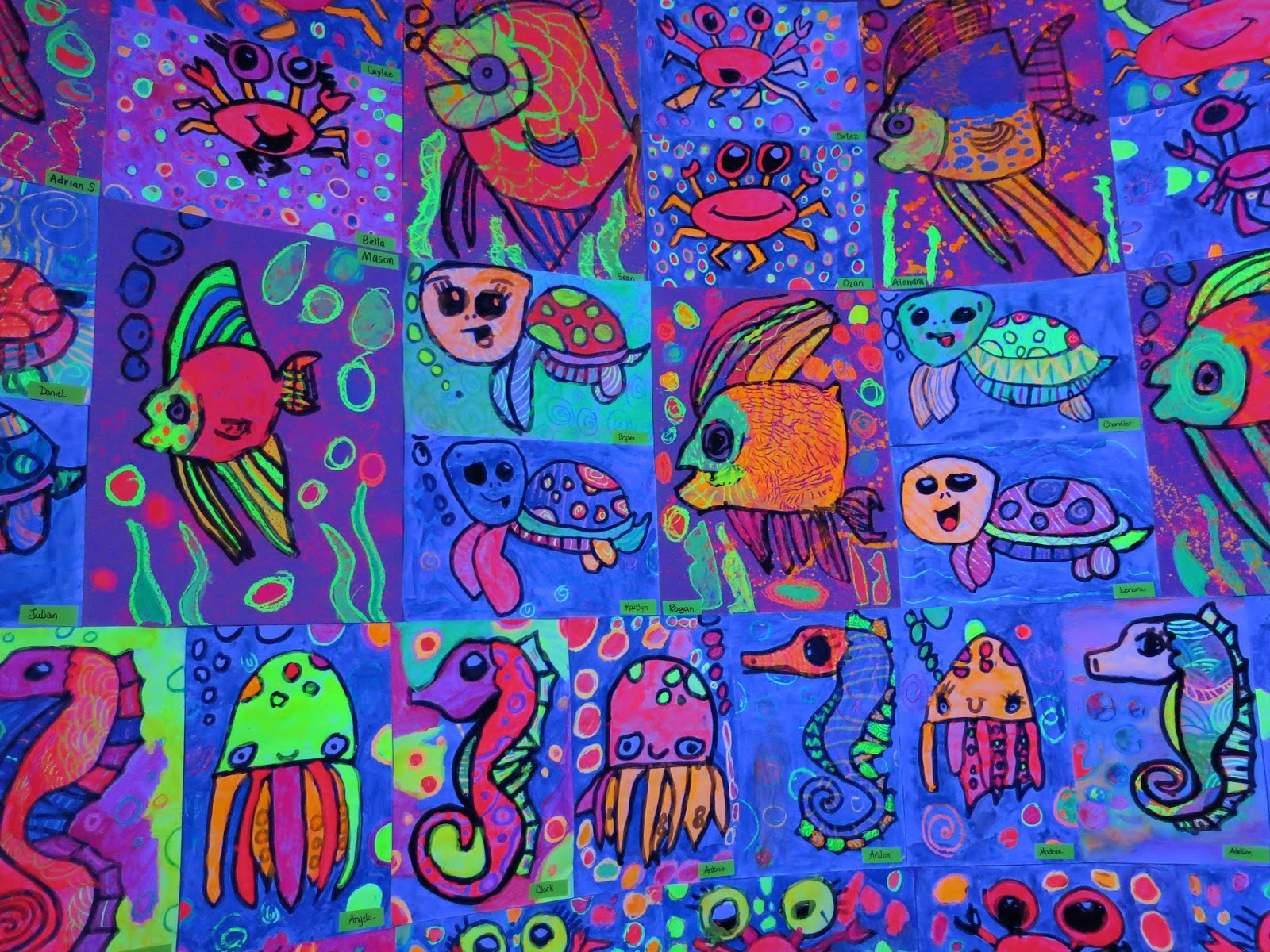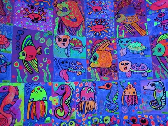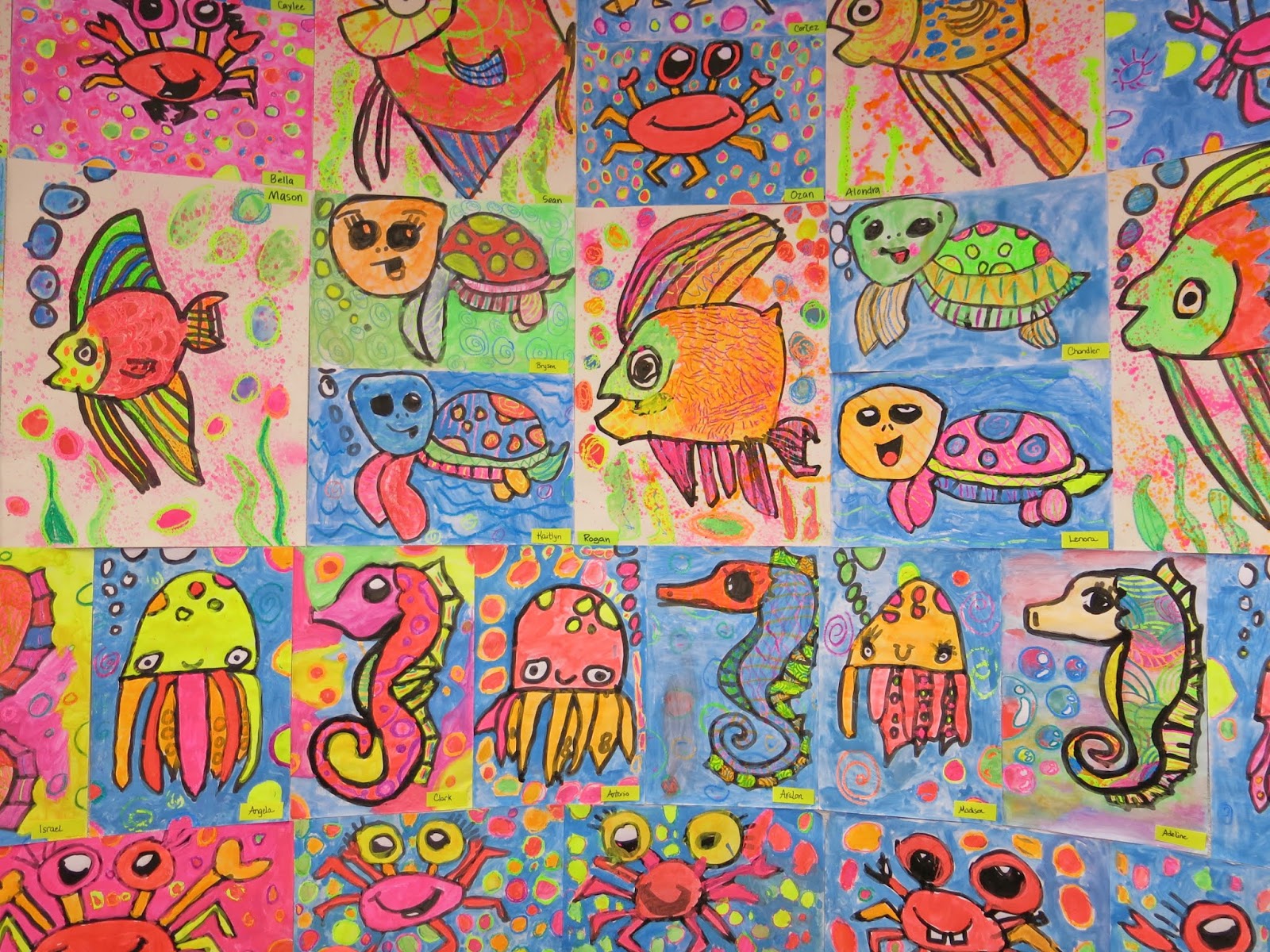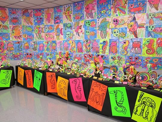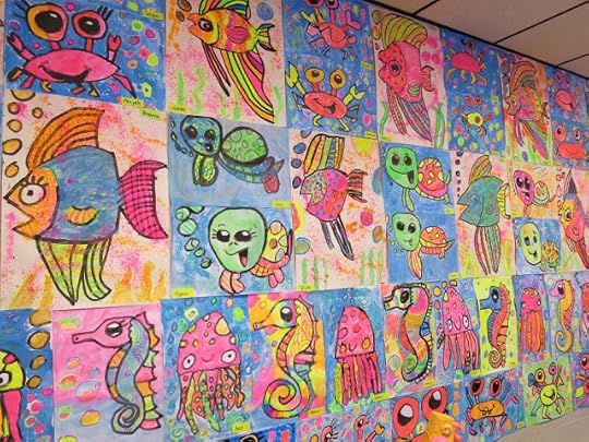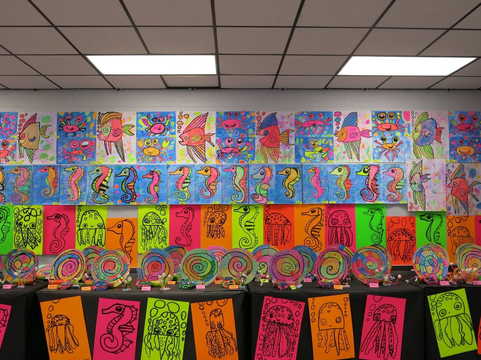 Some second graders created the GIANT angel fish by following here while others created the octopus on the neon paper due to time limitations.