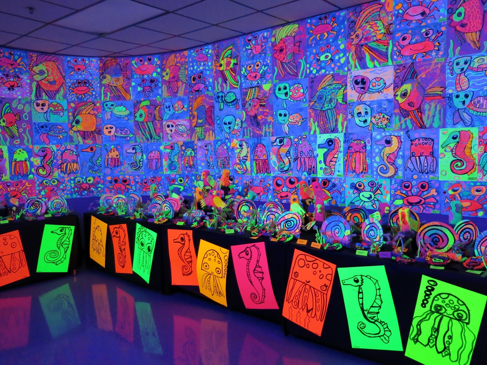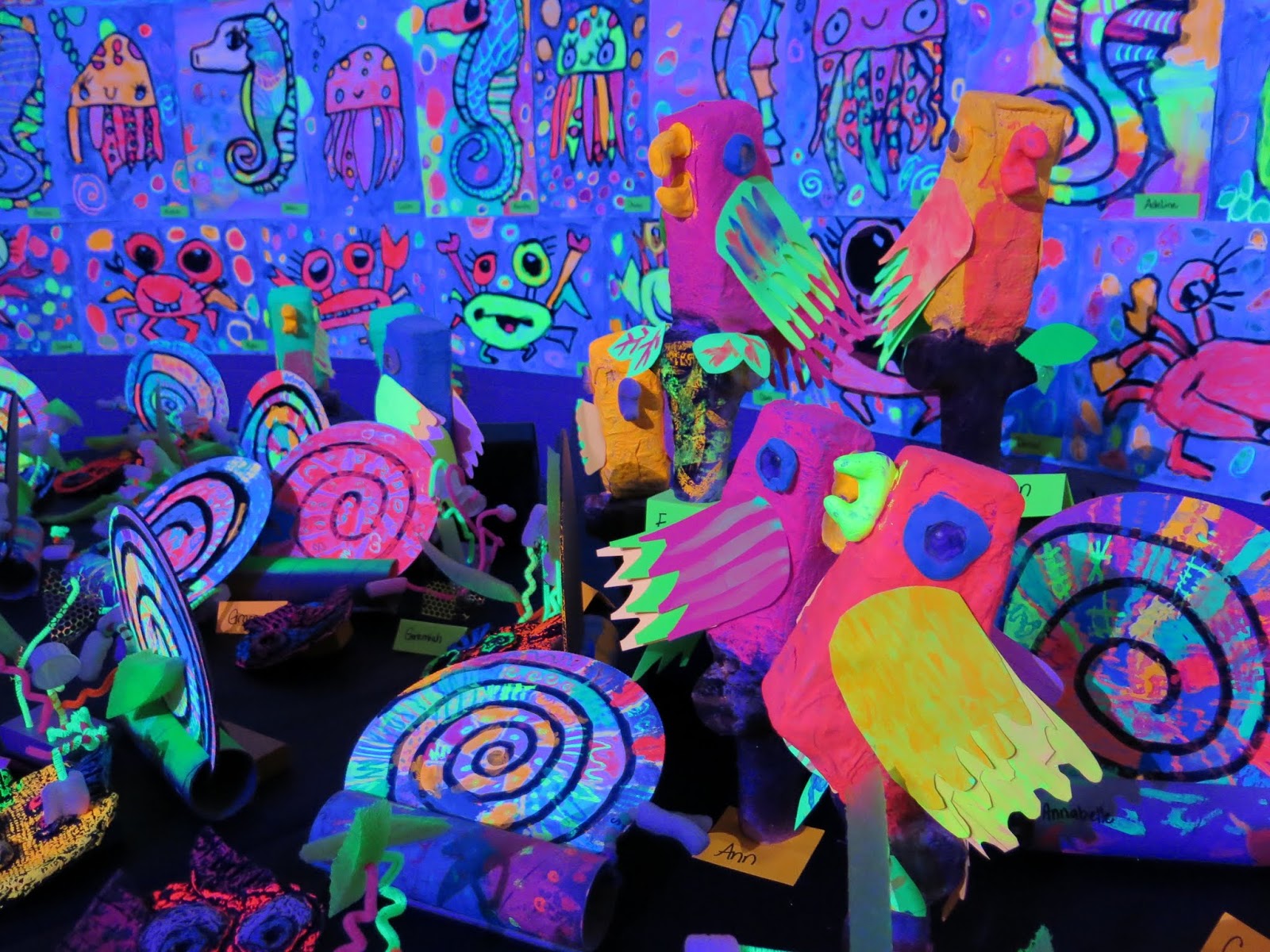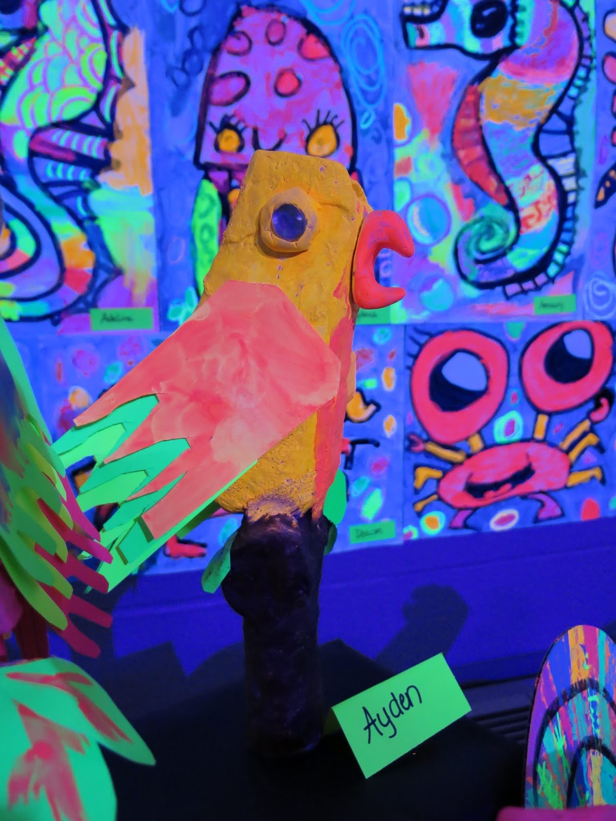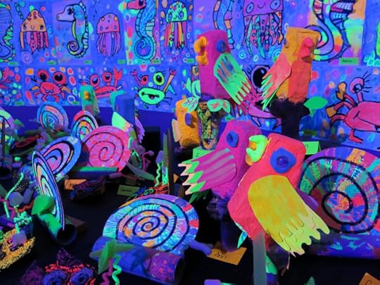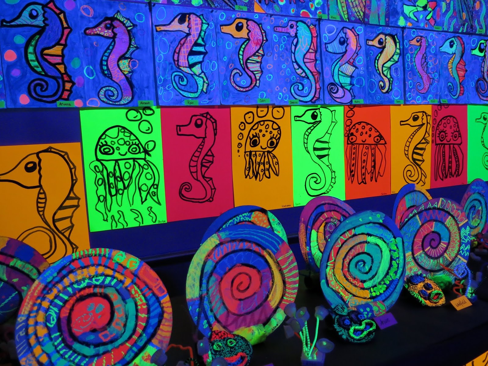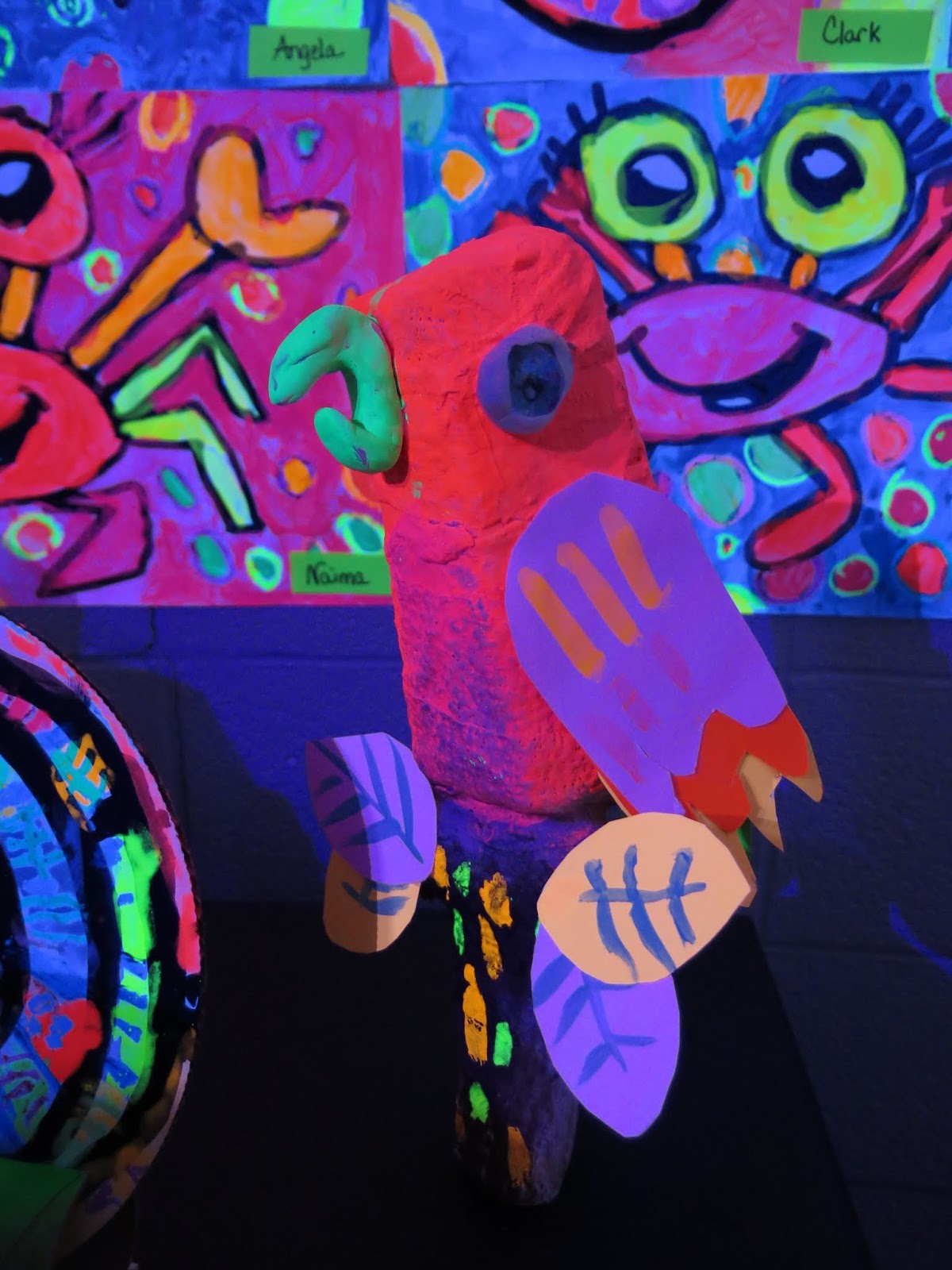Some second graders created the GIANT angel fish by following here while others created the octopus on the neon paper due to time limitations.