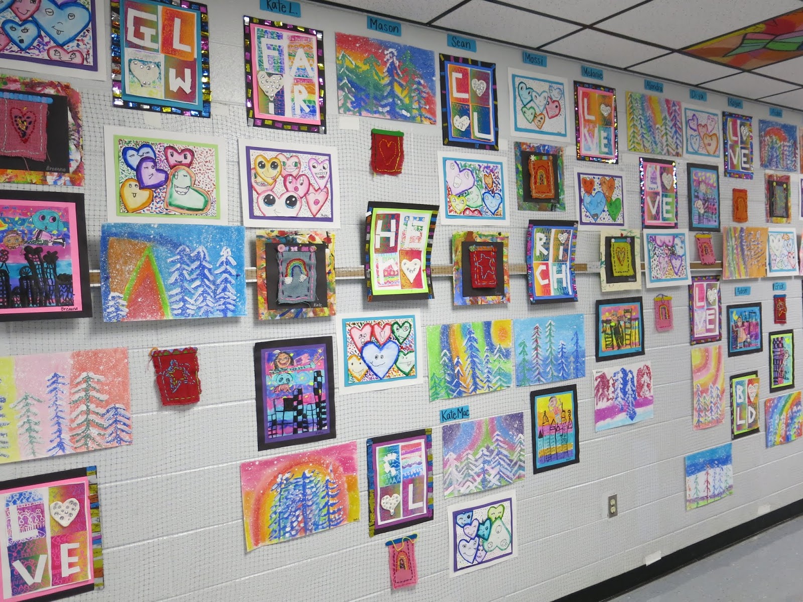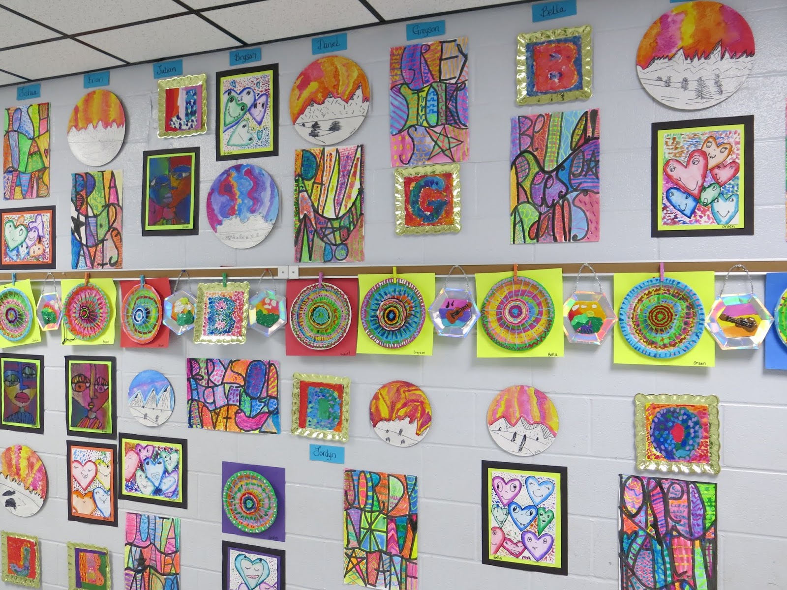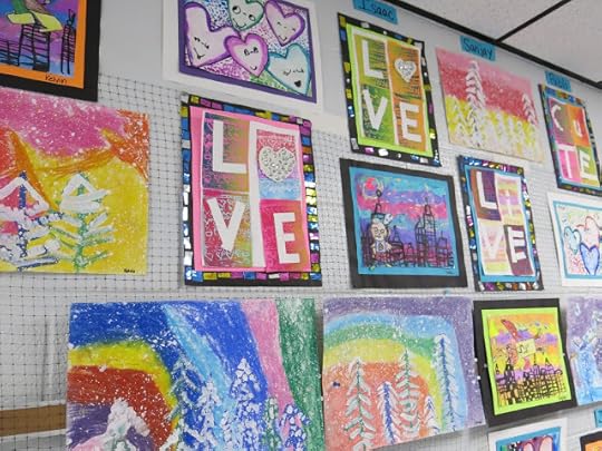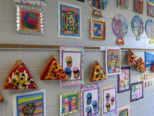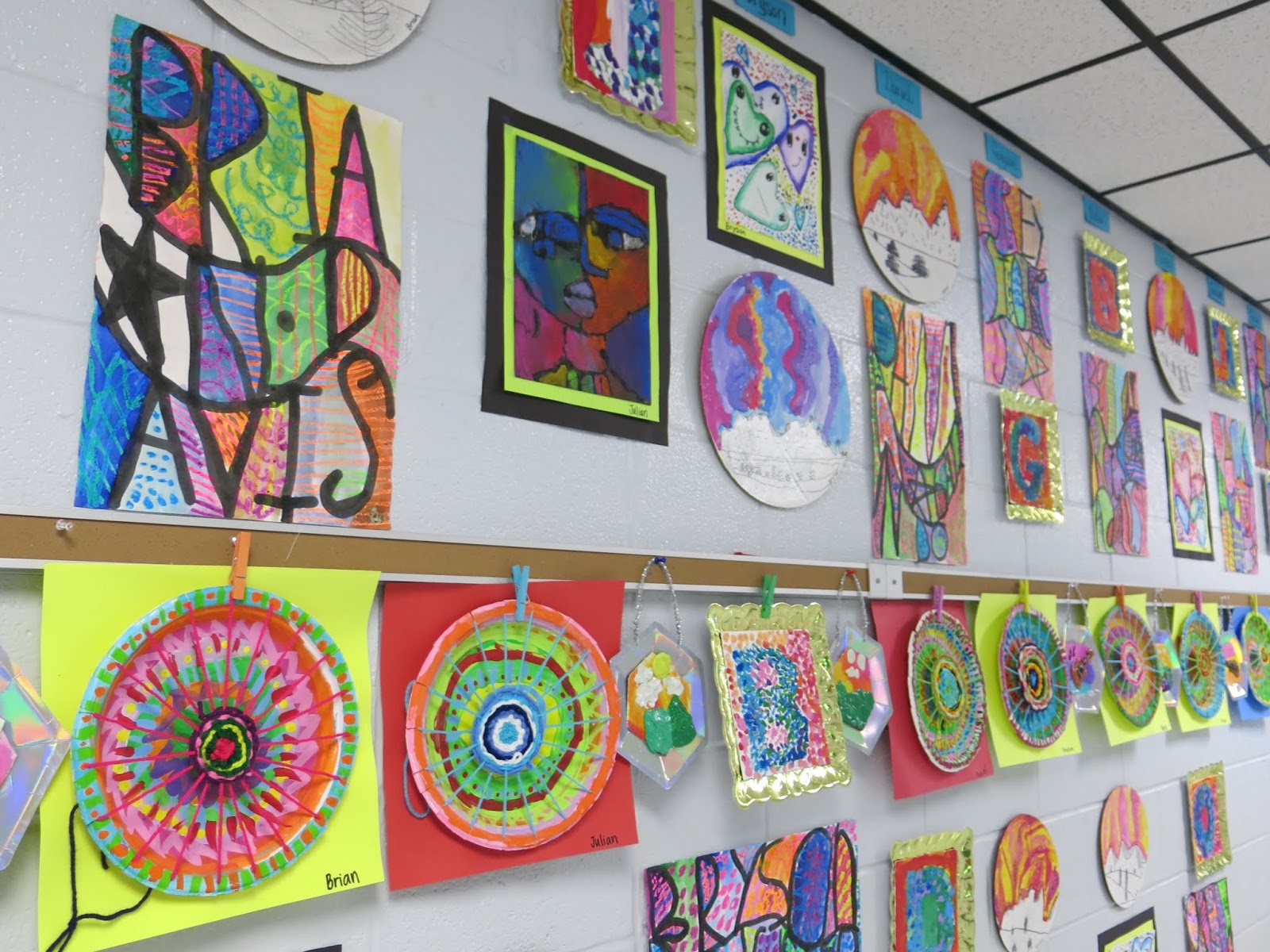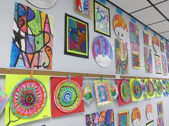 In this blog post, I thought I would share a link to each and every one of these lessons you see! This will give you an idea of what projects I teach (2D, that is) throughout the year. If you are interested in details on this art show: how it's hung, who does the hangin', how it's taken down and sent home, then you might want to watch this tour I created to answer those questions for you: