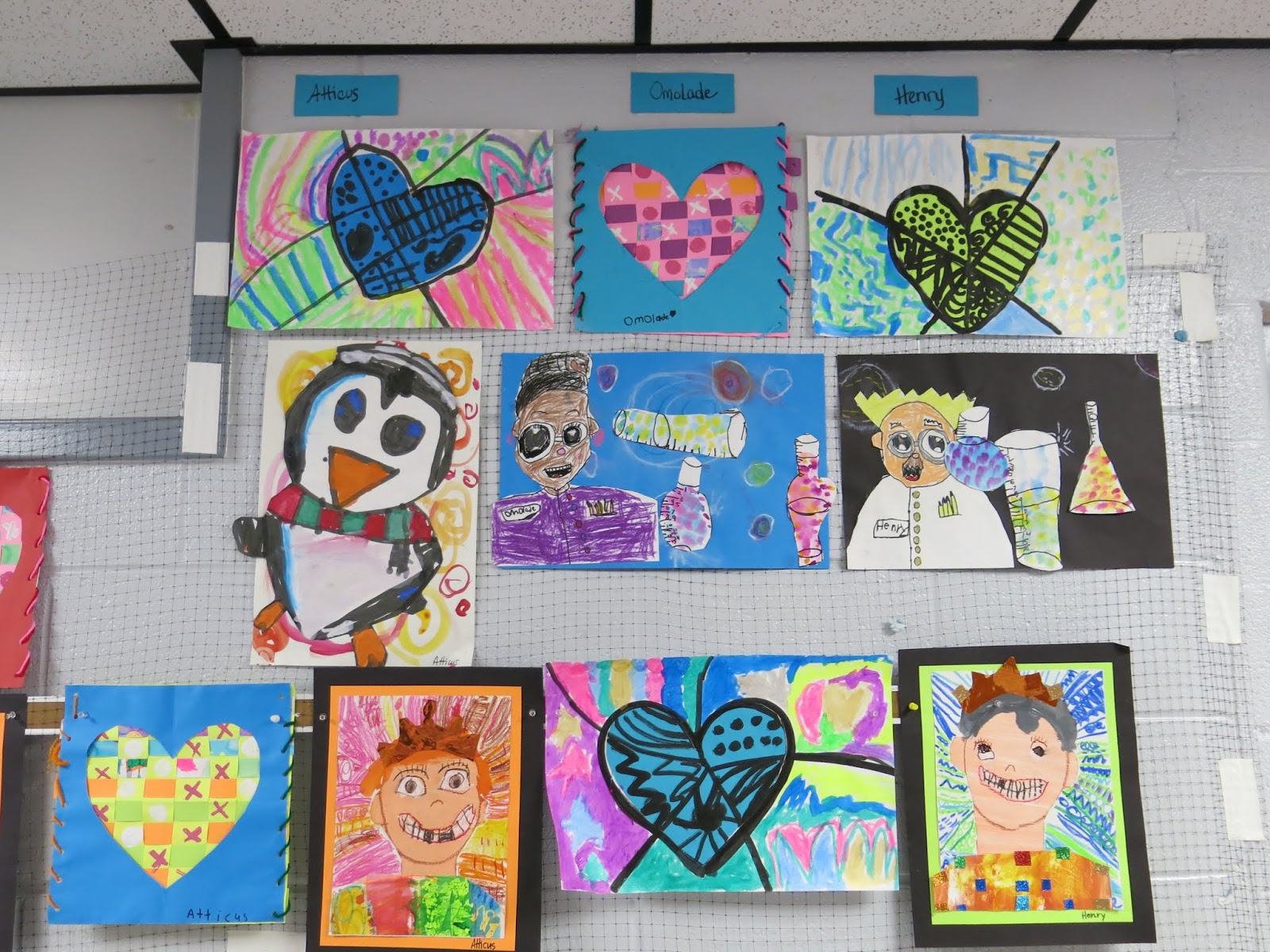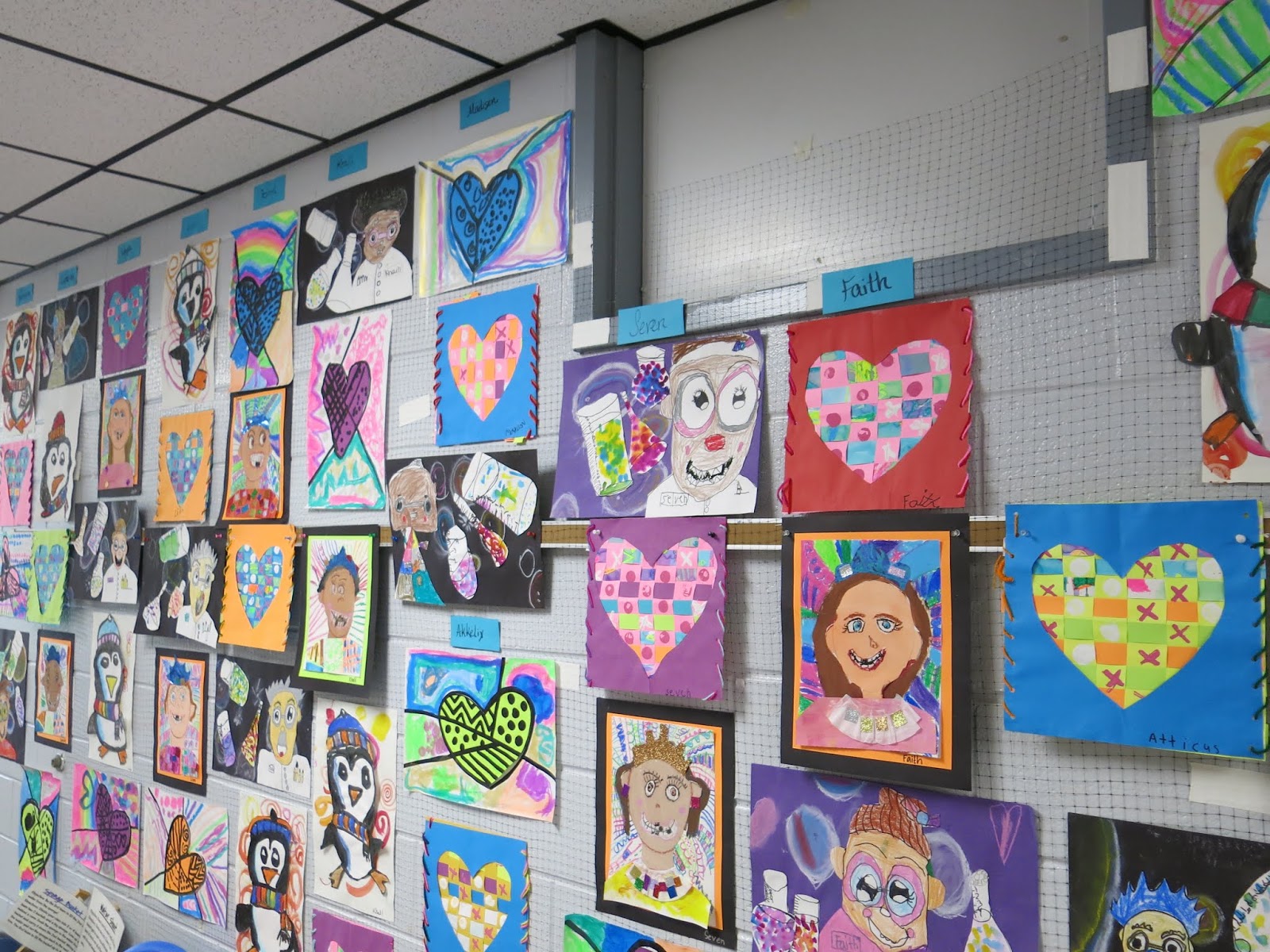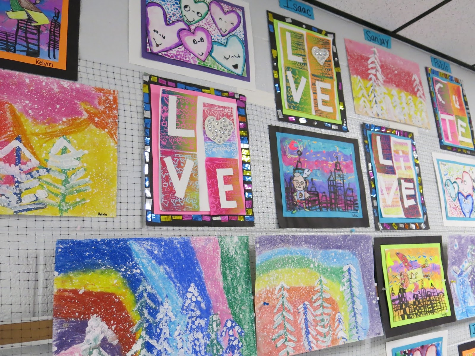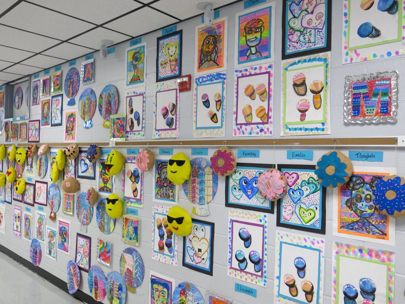 In this blog post, I thought I would share a link to each and every one of these lessons you see! This will give you an idea of what projects I teach (2D, that is) throughout the year. If you are interested in details on this art show: how it's hung, who does the hangin', how it's taken down and sent home, then you might want to watch this tour I created to answer those questions for you: