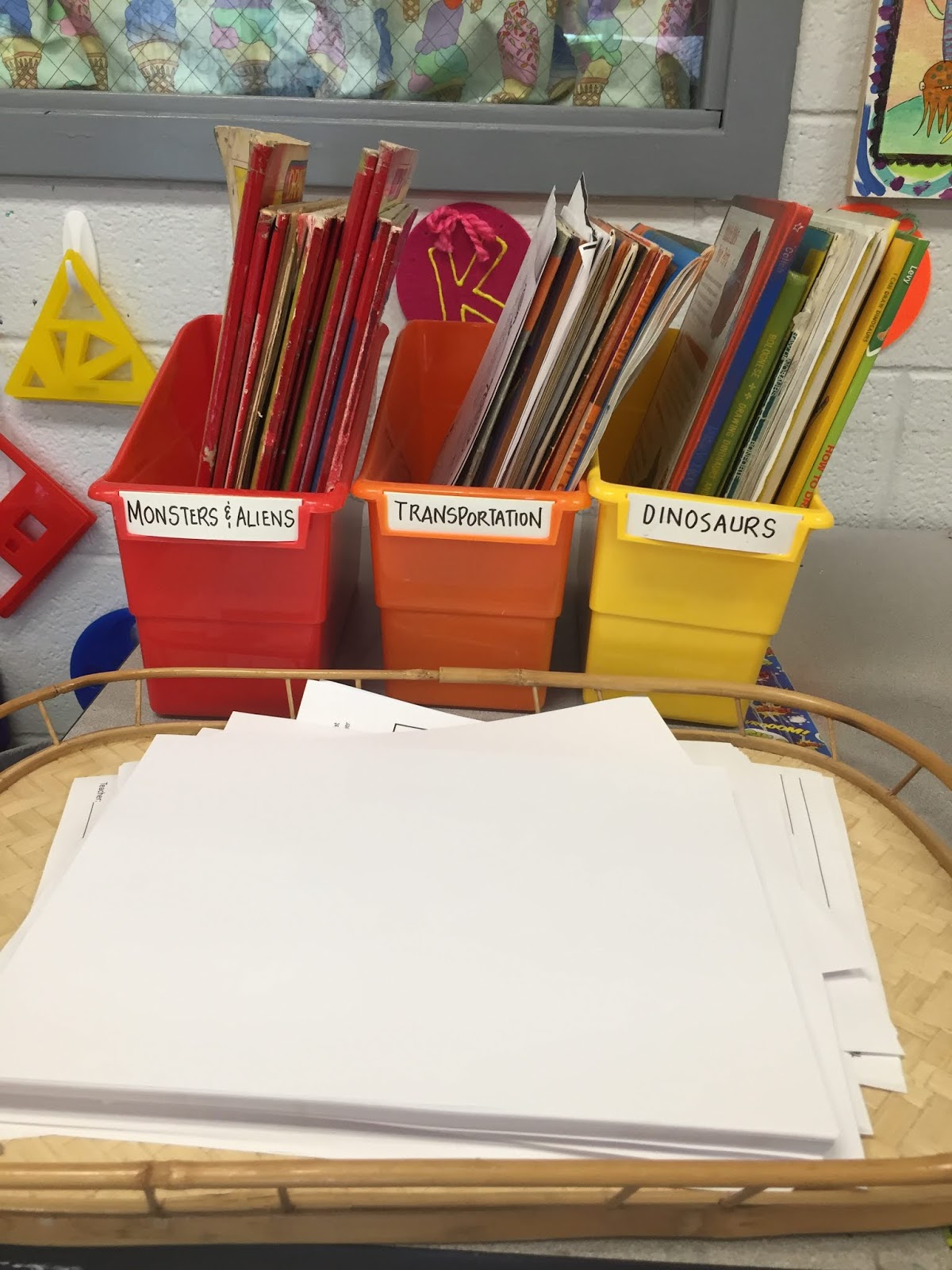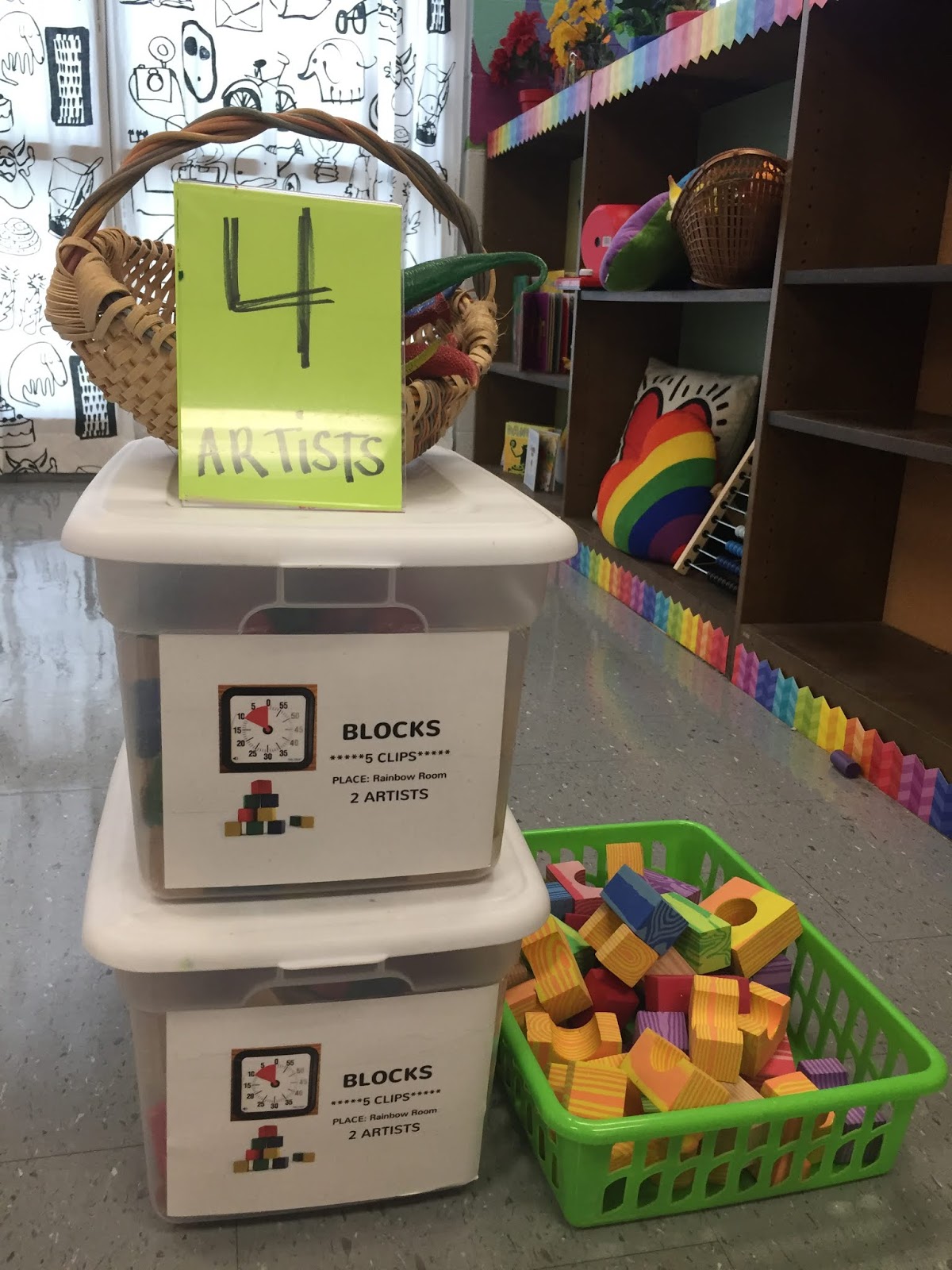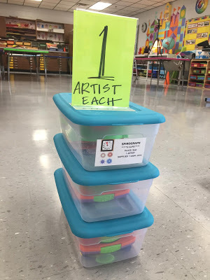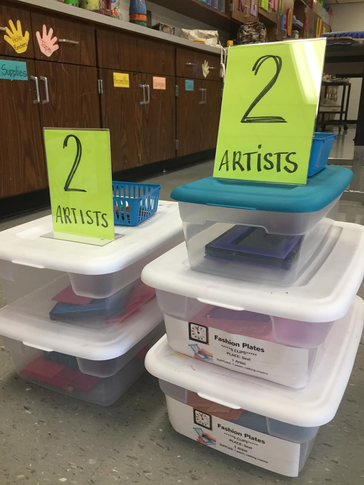 In the past, I relied on the kids to read the small labels on the bins to know how many young artists could work at a center. Those little labels are hard to read...and not all the bins are labeled. I used these plastic picture frames from the Dollar Tree for our Field Day activities that worked so well, I decided to use them again here: