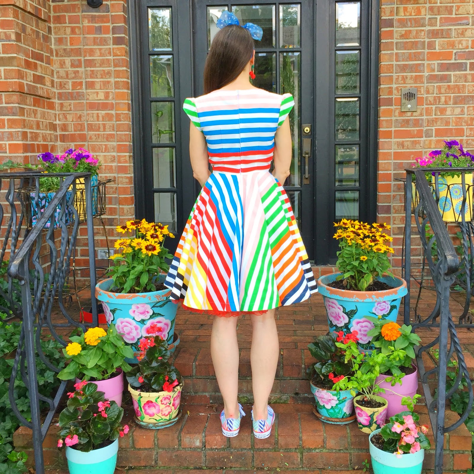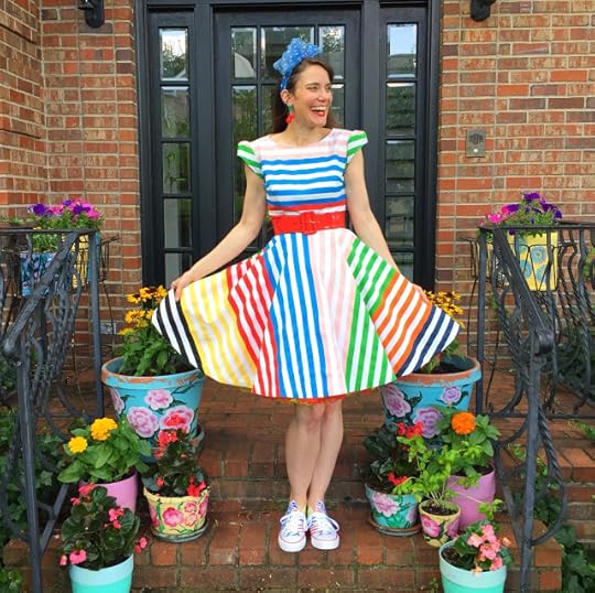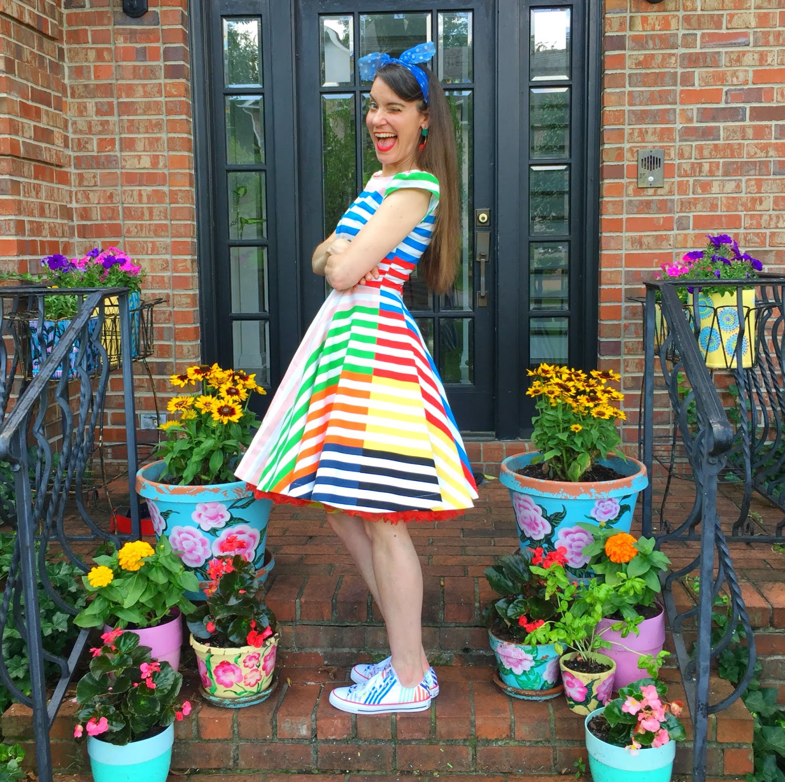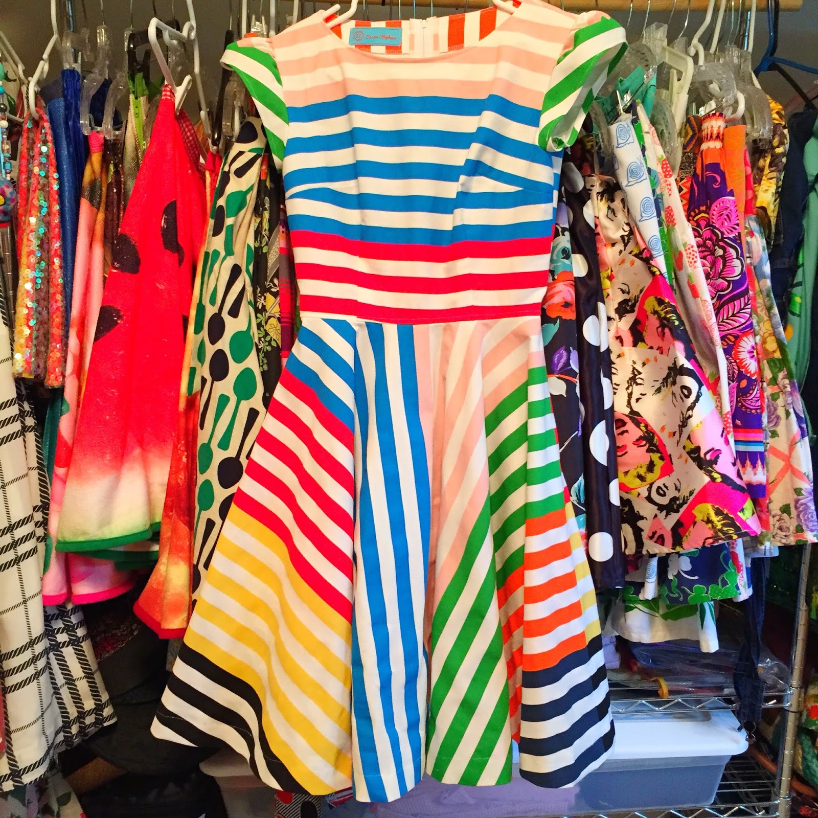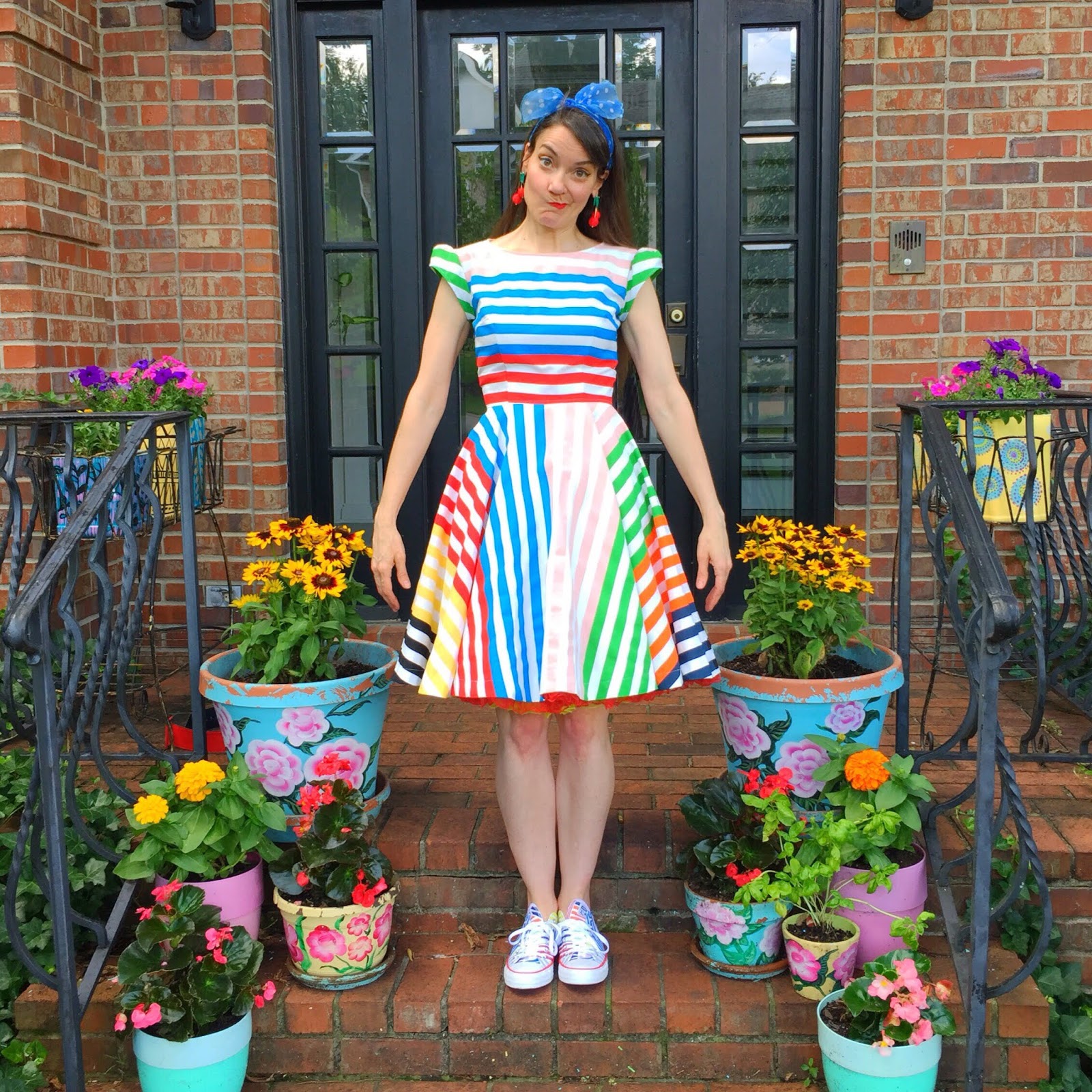 So Mitch suggested that I just start finishing one off, one by one. They were really so close to being done! For this dress, I spent about two hours just putting in the collar, hemming the circle skirt, attaching the bodice to the skirt and putting in the zipper. I managed to finish it off before 9am one summer morning. And here she is, The Stripe-y Masterpiece!