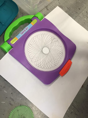 When I picked up a set of Spirographs from the Dollar Tree last year, I wasn't sure how great they'd be...or how well my younger students like first grade would work with them. But check out that amazing design by a firstie! I usually have to give a hand over hand tutorial for the kids because there is a learning curve. I also allow them to use mechanical pencils as they are the only ones with lead that is long and lean enough to fit into the holes of the wheel.