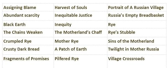 For Who Is to Blame? A Russian Riddle, I came up with 60 possible titles. Below are some of the better ones that didn't make the cut.