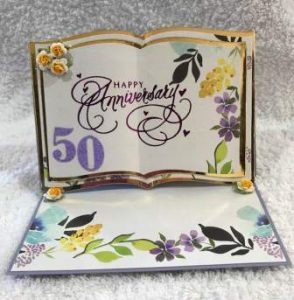 To get the shapes for the ‘book card’ I used a die made for this purpose. As you can see from the photograph, there are several layers to this.