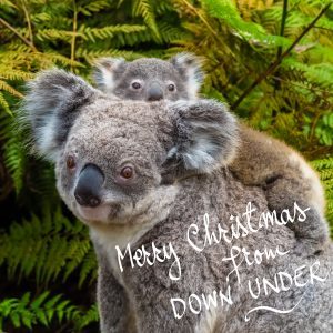 Australian koala with baby on the back.