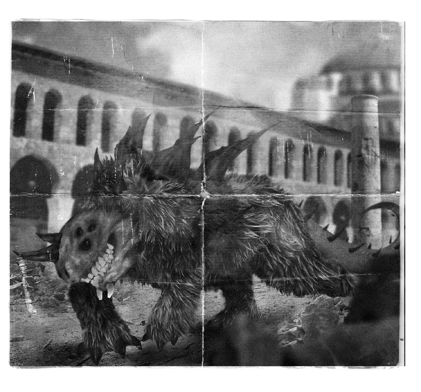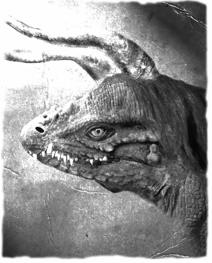 Animals have a different musculature than people, a different way of holding their weight and moving. So when designing a creature for the book, I tried to imagine what the closest real life animal would be and then began to study how it held itself. Like the Great Teras below, I wanted a hulking, weighty brute of an animal, something low to the ground and heavy. So I went off of pictures of both an American Grizzly and a Komodo Dragon. This formed the base, something to expand upon and develop. A starting point.
