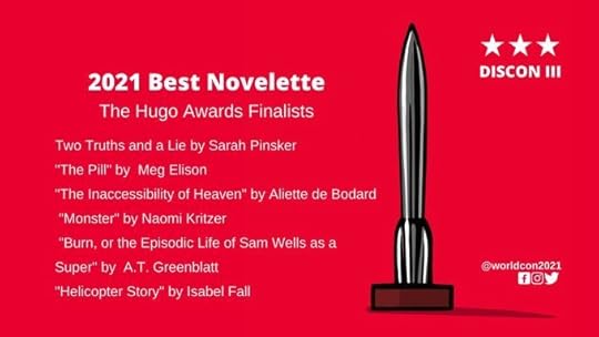Mejor noveletteBurn, or the Episodic Life of Sam Wells as a Super, A.T. GreenblattHelicopter Story, Isabel FallThe Inaccessibility of Heaven, Aliette de BodardMonster, Naomi KritzerThe Pill, Meg ElisonTwo Truths and a Lie, Sarah PinskerAquí solo repiten Greenblatt, Elison y Pinsker, pero me sigue ocurriendo lo mismo que hace un mes: no suelo estar muy pendiente de las novelettes que se publican. Sin embargo, en este periodo de tiempo leí Two Truths and a Lie, de Sarah Pinsker (que podéis encontrar gratis aquí) y… bueno. Digamos que no me sorprendió.