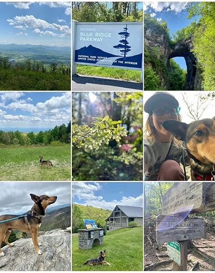 Some other fun details from the road — day one, driving through Shenandoah, and I saw the biggest owl I’ve ever seen. It flew up from the road so low I almost hit it. It was so majestic! When Walt and I stopped to hike at Natural Bridge, the park ranger there told me Walter was definitely a “Charlie” and I should change his name 😂 At Linville Falls, we bumped into a trio of hikers, and when I told them Walter’s name, the one hiker said that the last time he’d been to Linville Falls was with his father, who had just passed away, and that his name had been Walter. ❤️ (my best boy gave him some extra kisses). The first time we drove up to the Great Smoky Mountains welcome sign, there was a couple there walking up to take a picture with their pot bellied pig on a leash! I am not lying, I almost drove off the road 😂😂