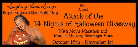 amounts of sugary sweets. But at the Laughing Vixen Lounge blog it’s also time for the 5th annual Attack of the 14 Nights of Halloween Giveaway. Join Laughing Vixen Lounge and our bewitching co-hosts The Kids Did It, The Mommy Island, Herding Cats and Burning Soup, The Hopping Bloggers, Mama Smith’s Reviews and Women and Their Pretties for a spooktacular Halloween event.