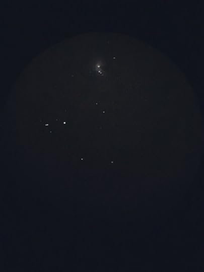 Last month, I mentioned I’d be getting a phone-to-eyepiece adapter for astrophotography and might have some new astrophotographs to share with you. Well, here’s my first one! The fuzzy patch you see in the photo above is the Orion Nebula, one of my favorite deep sky objects because it’s so easy to find even in light-polluted areas. The adapter helped so much with keeping the phone steady. The results aren’t going to knock anyone’s socks off, but I’m proud of how good this first effort looks with absolutely zero editing.