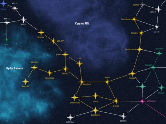 Map of the Eleutherian League in 3461, just before the events of “What Good Fathers Do”For Captain Zamile Kani, the mission is simple: escort transports loaded with thousands of soldiers, civilian contractors, and their families (including his own) to reinforce the fleet base at Desolation. But when he arrives to find the base destroyed and a swarm of enemy missile boats bearing down on his convoy, Zamile must reckon with his failures as a father…and what it means to be a better one.