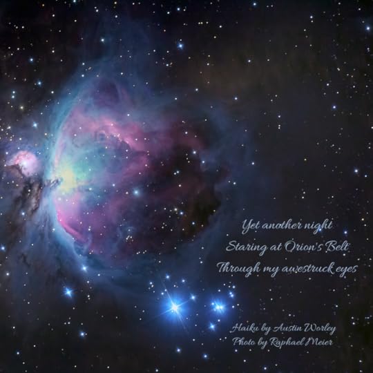 “Looking Up”, my very first haiga posted on InstagramBeing a writer on such a visual platform is a little odd, but it seems like the perfect place to share all the haiga and other visual poems I created in November with Canva Pro. I’ll also be posting book covers and promotional graphics on occasion, along with some of my amateur astrophotographs.