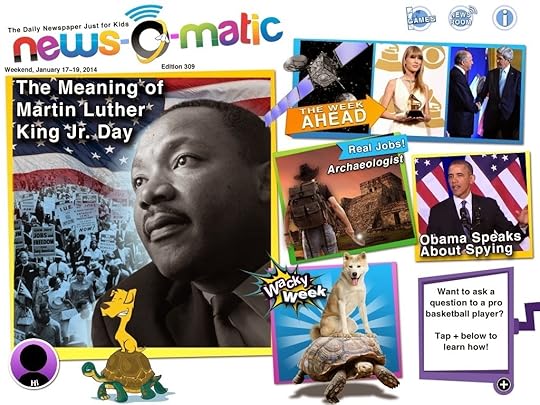 And of course we talk to kids to get their perspectives, such as with our Martin Luther King, Jr., article (posted yesterday). To be truly a kids' newspaper we need them to be a part of it. News-o-Matic aims to create a dialogue to get children writing, asking questions, and actively interacting with the news. And it's working. Kids feel like they have a newspaper just for them.