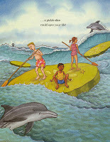 But what about the other two legs of the stool? Can non-fiction add to their support? You've no doubt figured out my answer: of course. Take conceptual understanding. I'll choose a book of my own, If Dogs Were Dinosaurs, which is a companion to the earlier If You Hopped Like a Frog. Both are about proportion, The first compares animal abilities to corresponding abilities of animals; the second looks at relative size (scale) through preposterous examples. "If a submarine sandwich were a real submarine. . . a pickle slice could save your life." The math is explained in the back — and it's easy! See the funny examples, read the back matter, try a few examples of your own (thank you, teachers), and voilà: ratio and proportion make sense. Daunting (and boring) no more. Many have told me so.
