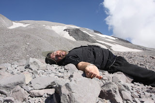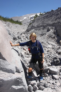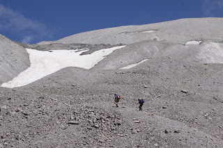 and boulders. And then we faced a huge, steep snow field. The kind where