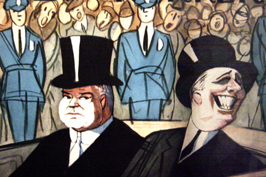holding up a flag with Eisenhower. My editor asked me to illustrate this but I