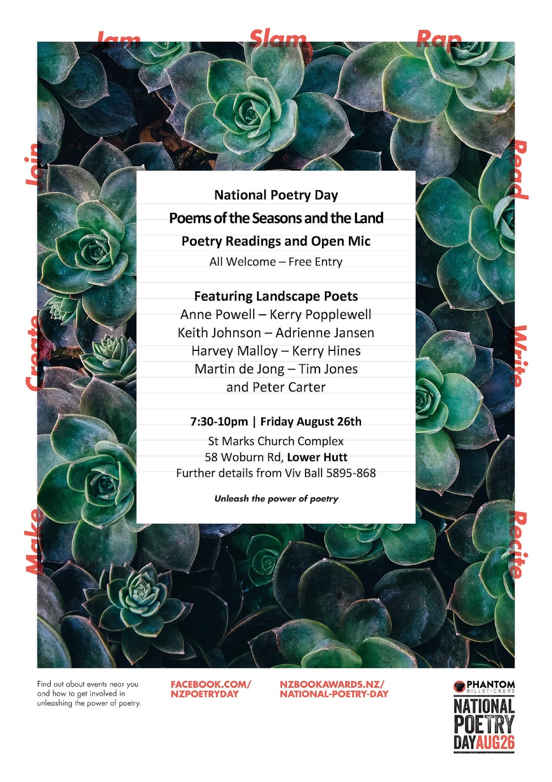 National Poetry Day on 26 August: Events in the Hutt and Wellington