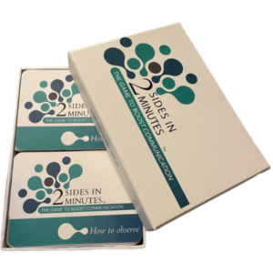 The 2 SIDES IN 2 MINUTES game generates a thought-provoking learning experience for any professional interested in improving their communication and influence. 2 SIDES IN 2 MINUTES is the game to understand different perspectives and develop communication and leadership skills.
