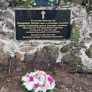On Sunday 23rd July 1922 four young South Armagh girls, Mary (Minnie) Connolly (aged 20), Margaret Moore (aged 12), Mary Moore (aged 18) and Kate Moore (aged 15) were ambushed by British troops as they walked home. About 30 minutes before the 11pm curfew the four young women were close to their homes when British soldiers from the First Battalion of the Royal Sussex Regiment attacked them. In the fusillade of shots that were fired Margaret Moore and Minnie Connolly were shot and killed and Mary was seriously wounded.