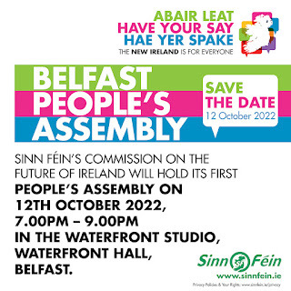 Last summer Sinn Féin announced the setting up of a ‘Commission on the Future of Ireland.’ The Commission is a unique and ambitious initiative which includes a series of Peoples’ Assemblies under the broad slogan - ‘The New Ireland is for Everyone – Have Your Say.’