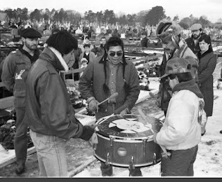 It was 1985 and we were accompanying a delegation of Native American Indians from the American Indian Movement (AIM). They were in Ireland to ‘see the situation – political and cultural …’ The delegation laid a wreath at the graves of our Patriot Dead and chanted the national anthem of AIM to the beat of their drum.
